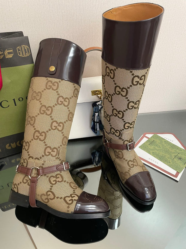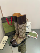 Gucci 2026 Boot Brown mix Beige Canvas Leather 911944