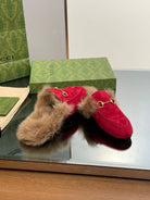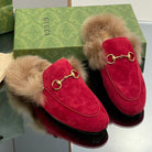 HORSEBIT MULE IN CRIMSON RED SUEDE AND LAMB WOOL LINING