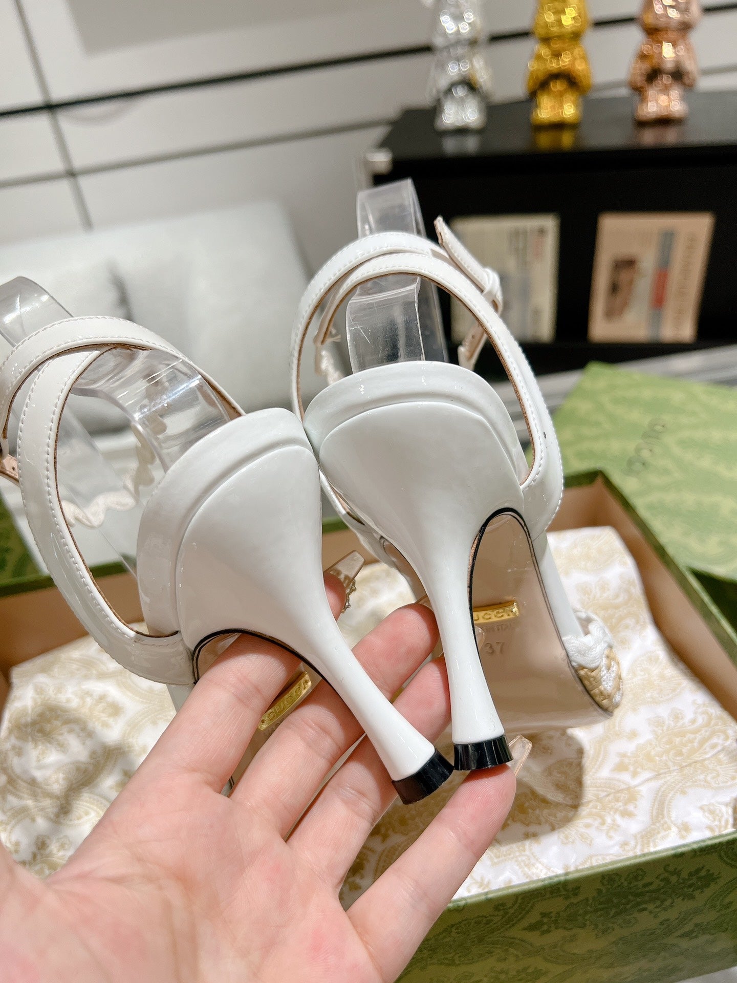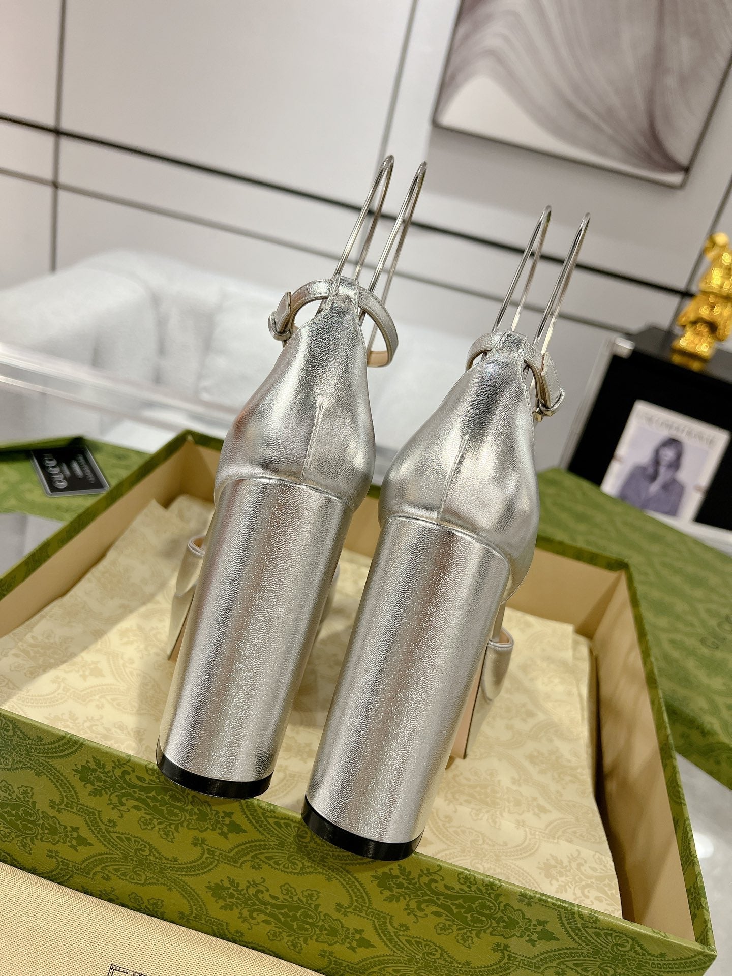 GG CRYSTAL HIGH HEEL SANDAL SLIVER CALFSKIN SPECIAL