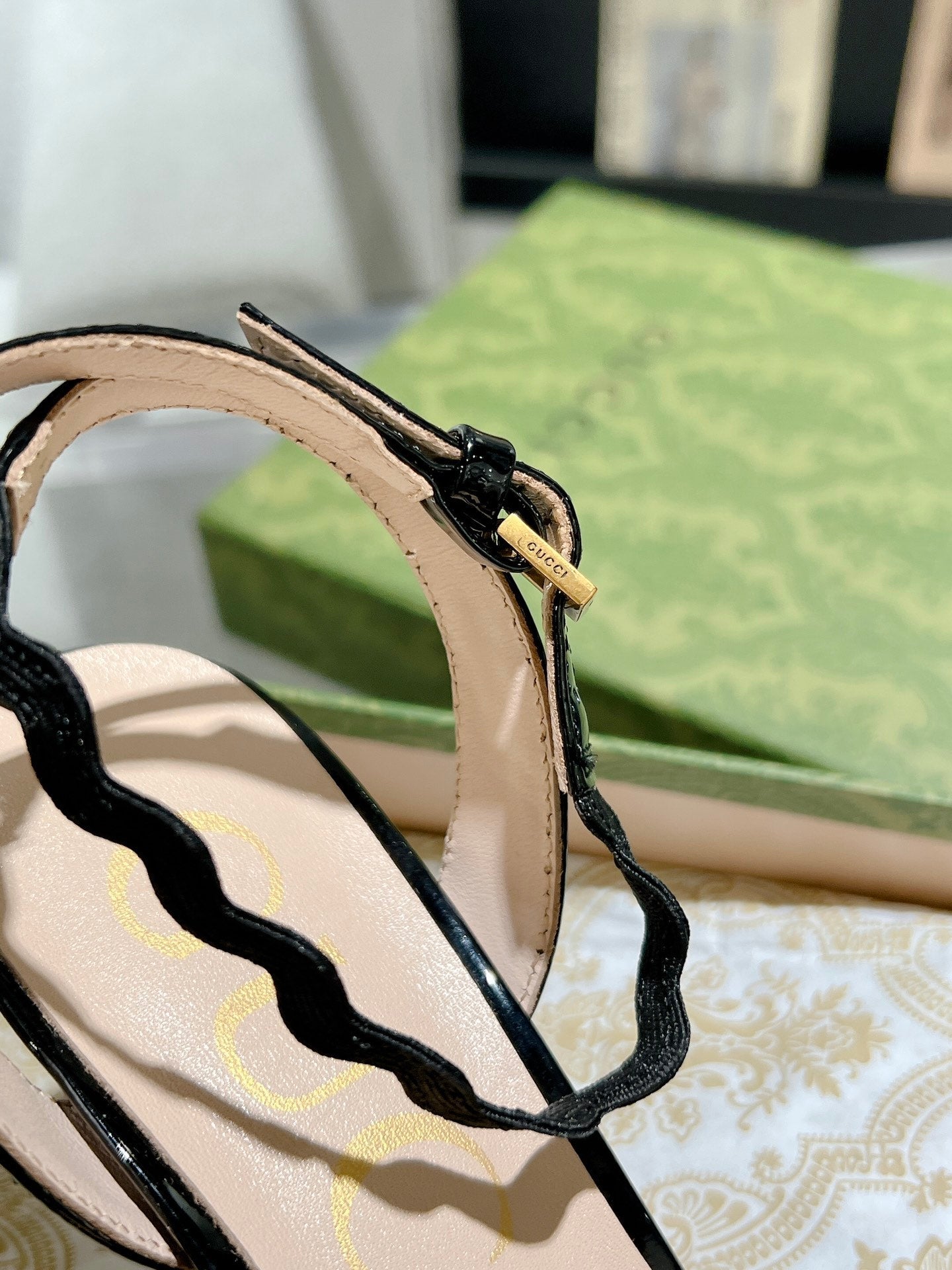 GG CLASSIC STRAPPY HEEL SANDAL BLACK CALFSKIN