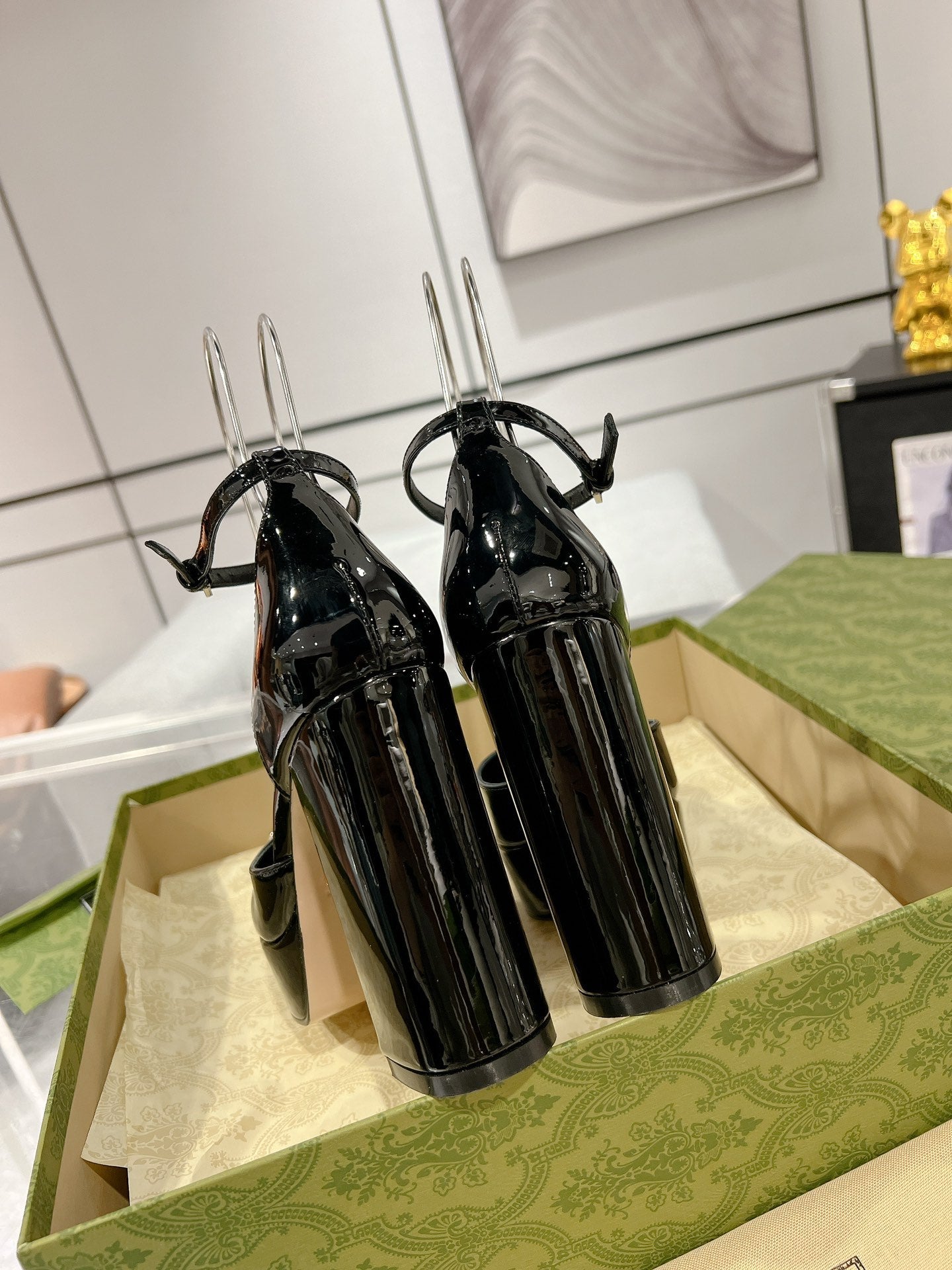GG CRYSTAL HIGH HEEL SANDAL BLACK CALFSKIN SPECIAL