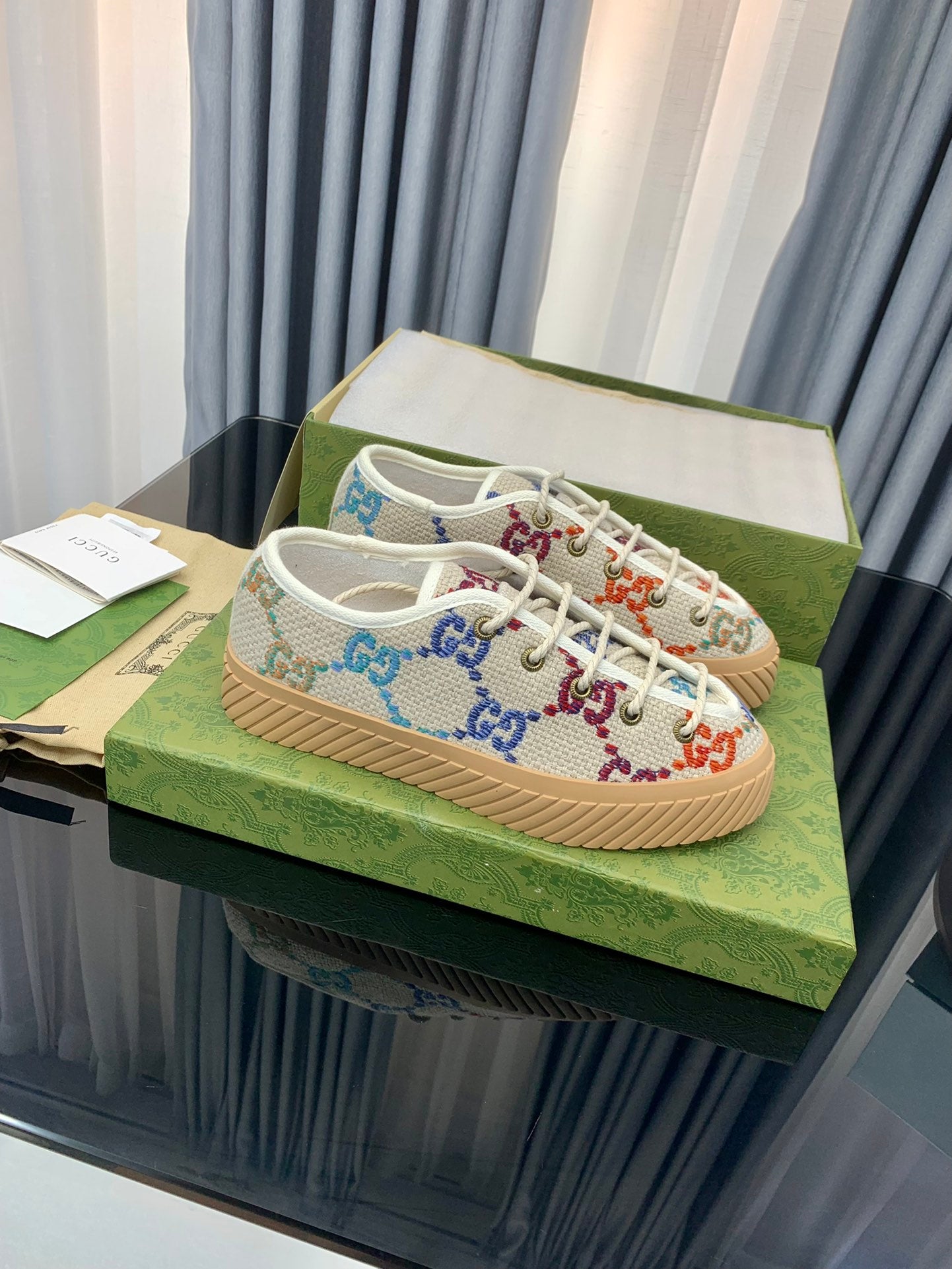 GG SNEAKER FLATFORM FLOWERS PATTERN CANVAS
