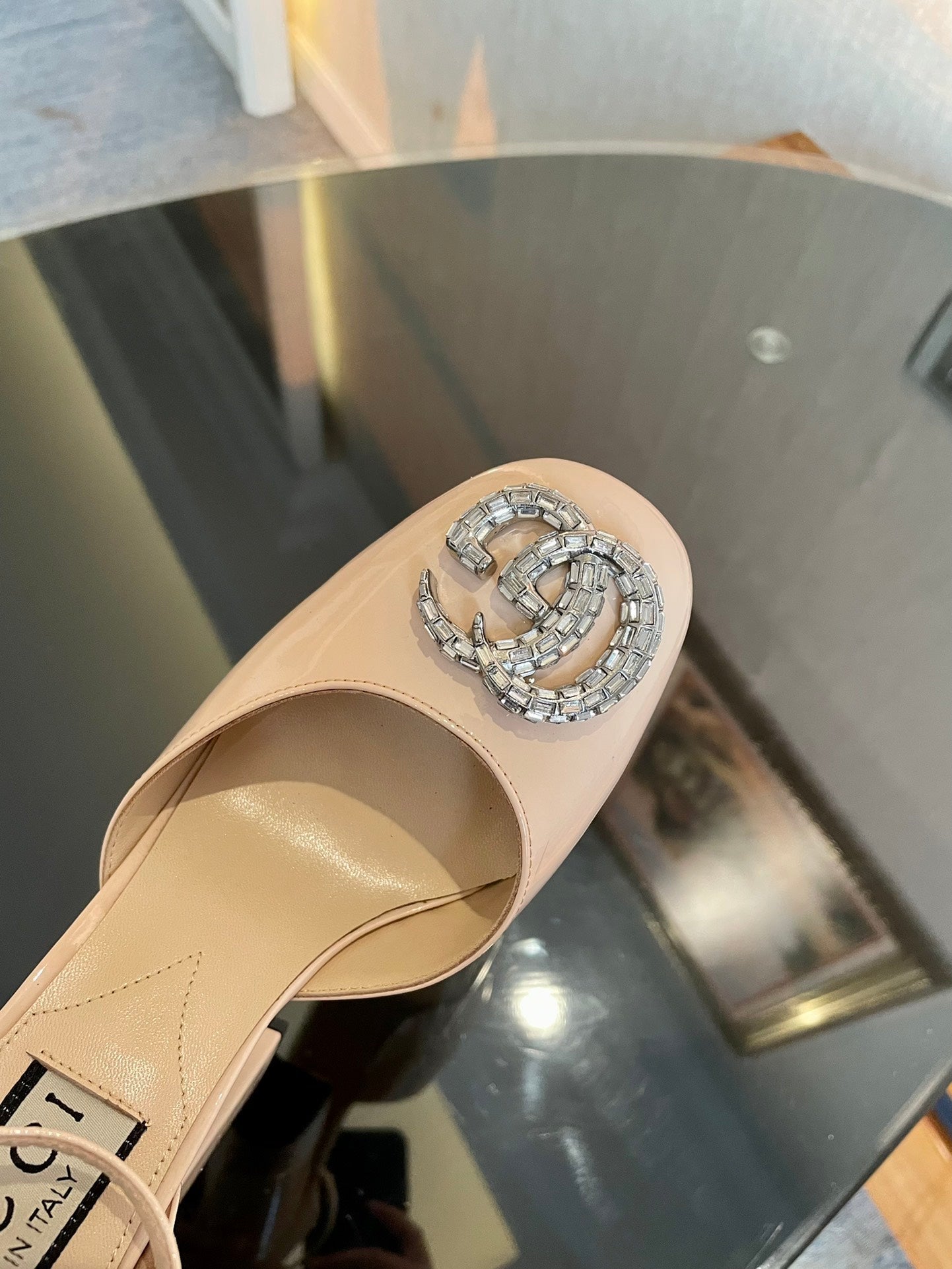 GG CRYSTALS SLINGBACK BALLET LIGHT PINK CALFSKIN