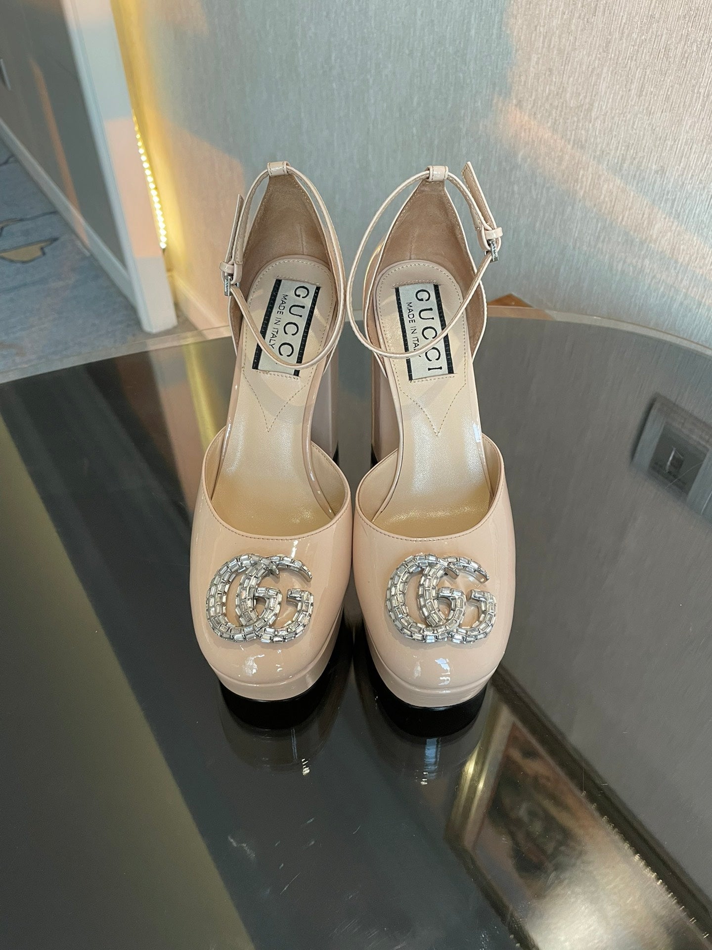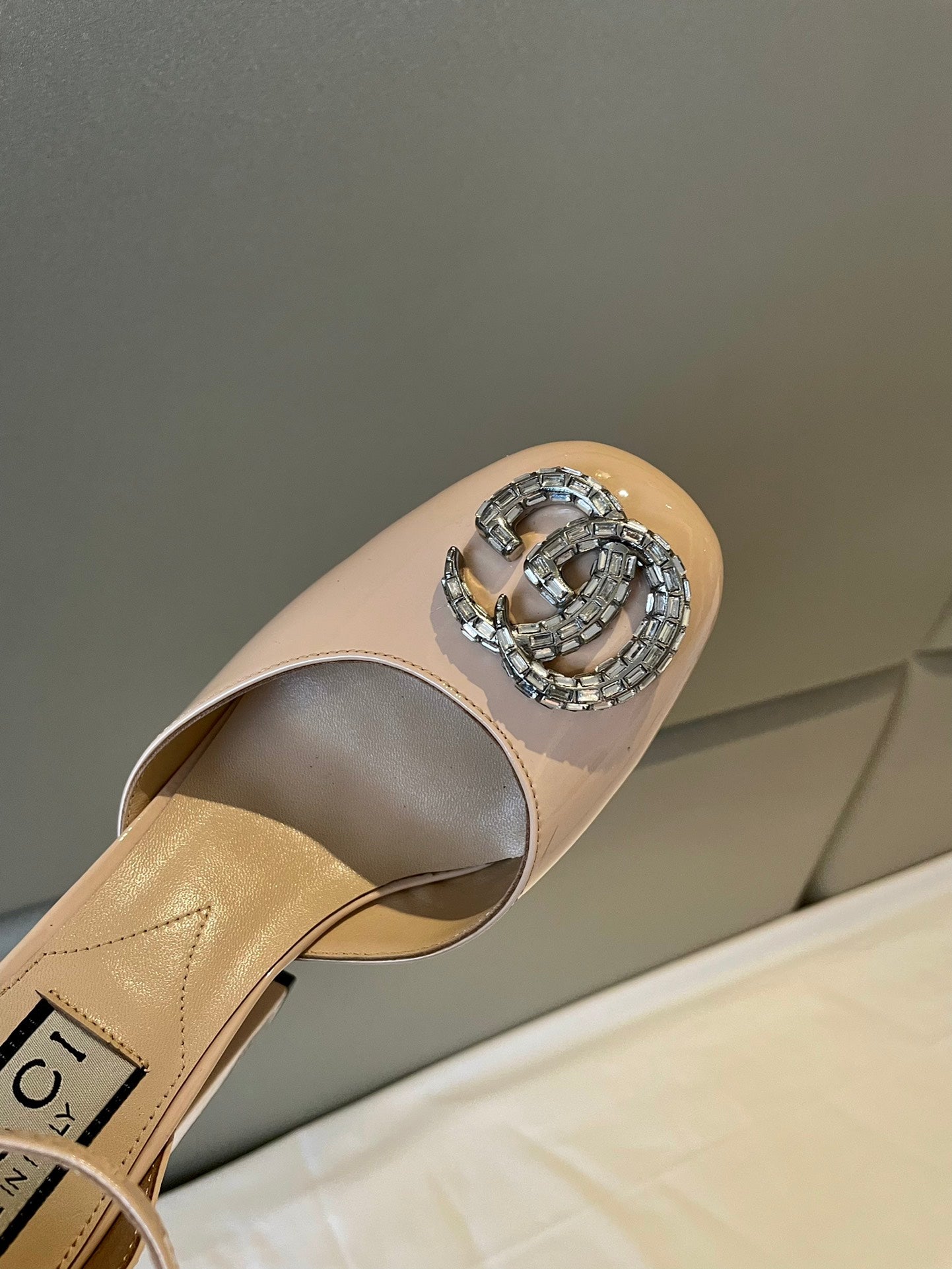GG CRYSTALS SLINGBACK BALLET CREAM CALFSKIN