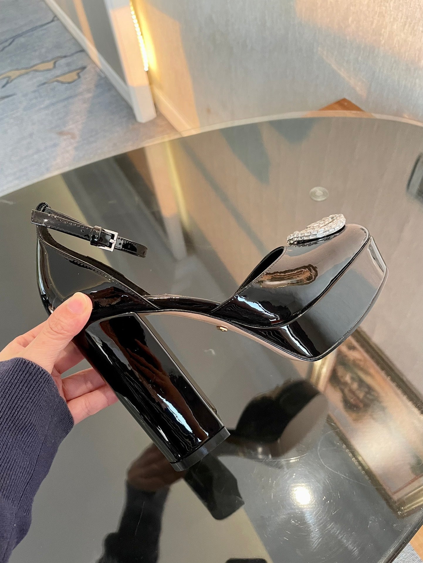 GG CRYSTALS SLINGBACK BALLET BLACK CALFSKIN
