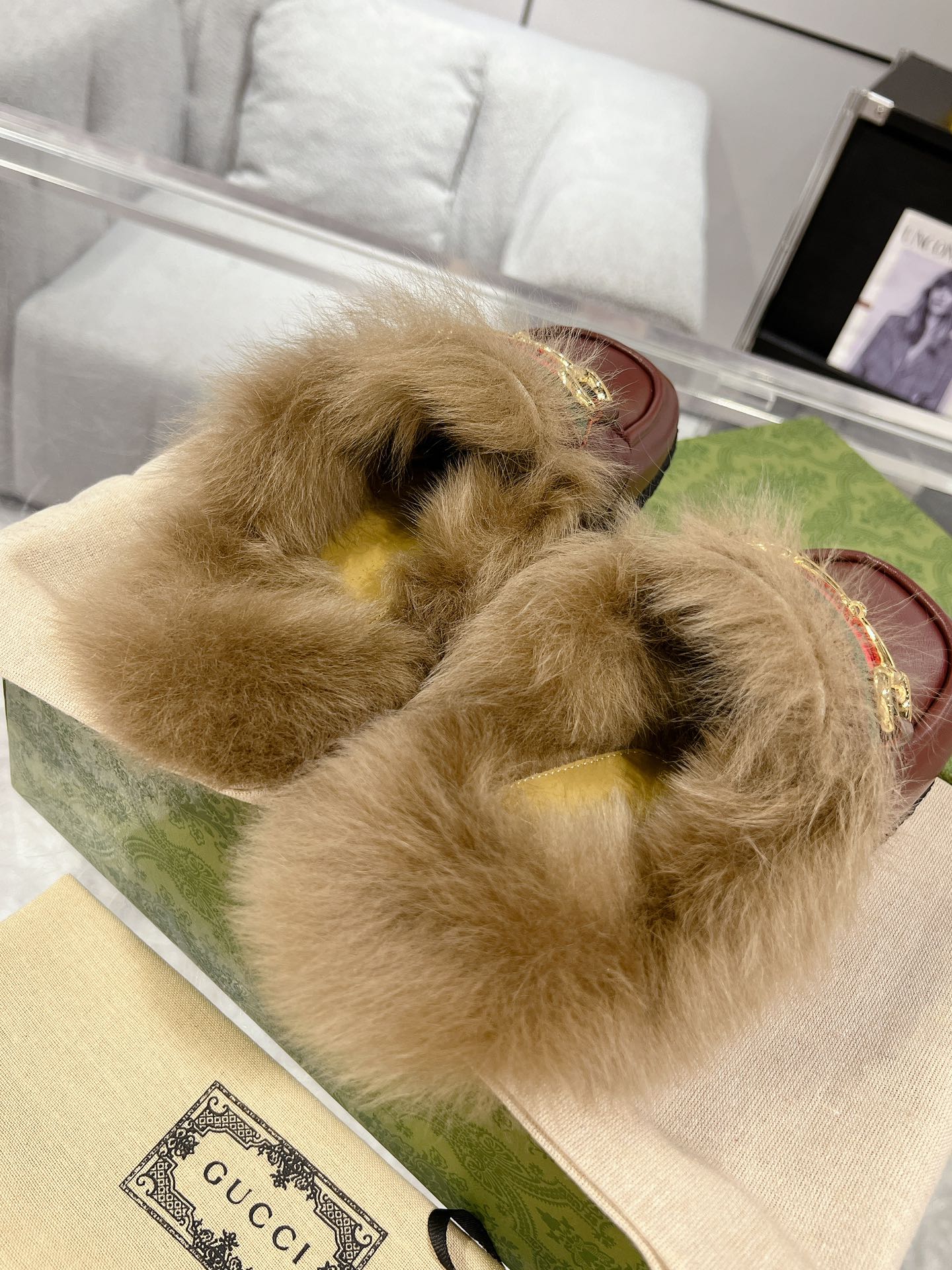 HORSEBIT MULE WITH WEB IN WINE RED CALFSKIN MIX MINK FUR