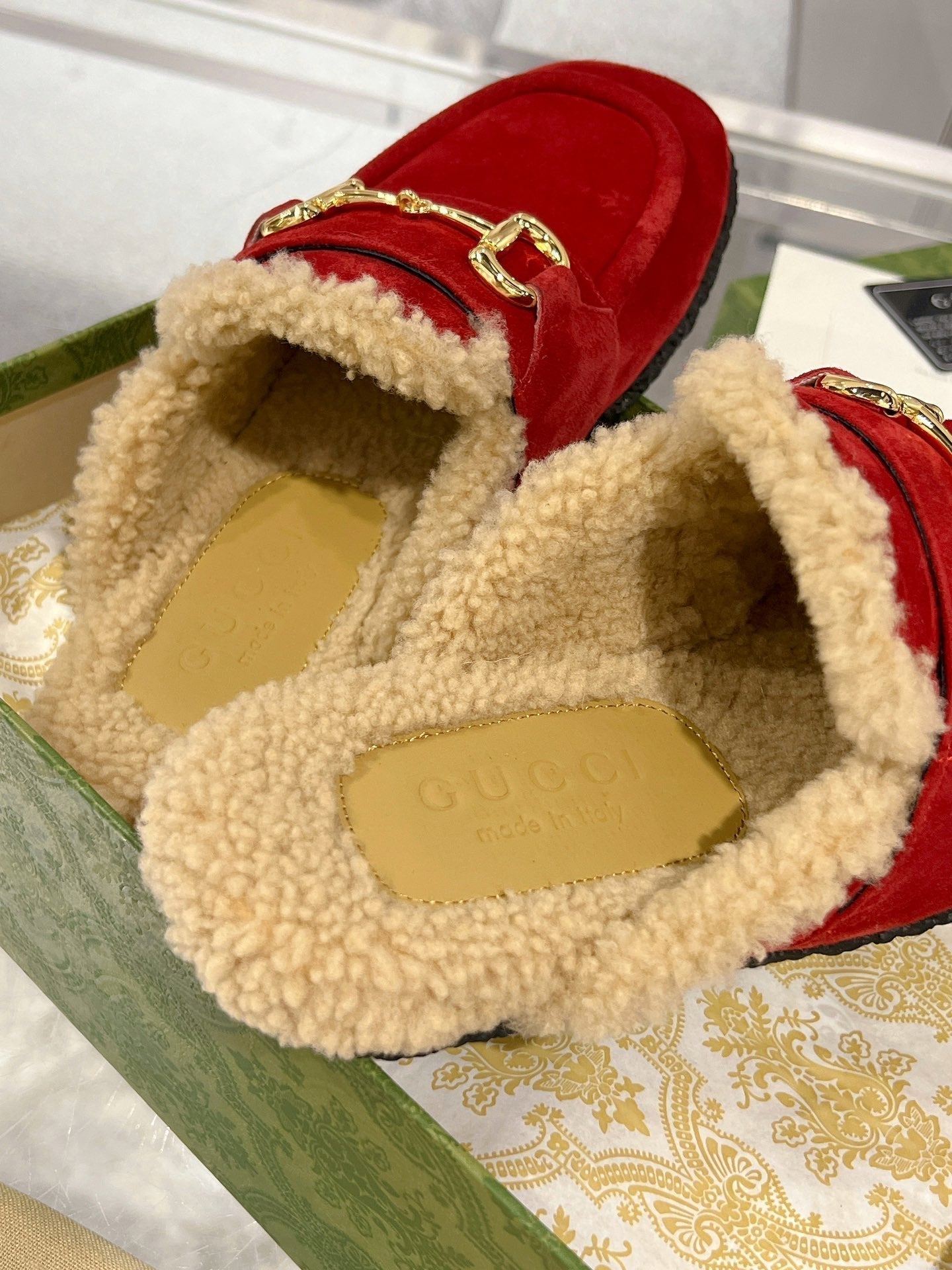 HORSEBIT MULE IN RED SUEDE AND FLEECE LINING
