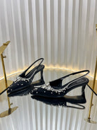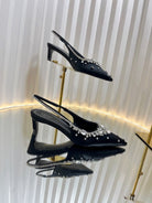 GC 2025 Crystal Embellished 55mm High Heels Slingbacks Black Silk Sheepskin 294526