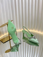 GC 2025 Crystal Embellished 55mm High Heels Slingbacks Green Silk Sheepskin 294528