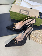 GC Horsebit Slingback Pump 100mm Black Canvas Sheepskin 294564