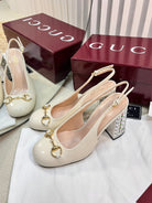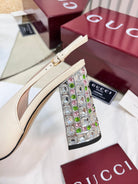 GC Horsebit Slingback with Crystal 95mm Ivory Patent Leather 294595