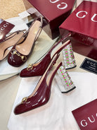 GC Horsebit Slingback with Crystal 95mm Rosso Ancora red Patent Leather 294596
