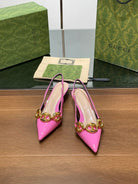 GG MID-HEELED SLINGBACK 4.5 CM IN FUSICA PINK GLOSSY CALFSKIN