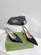 GG SIGNORIA 45 SLINGBACK PUMP GLOSSY BLACK LAMBSKIN