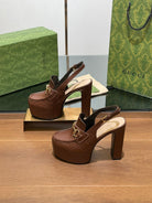 GG WOMEN'S HORSEBIT PLATFORM SLINGBACK IN DARK BROWN EMBOSSED CALFSKIN