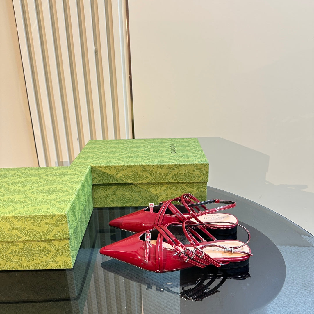 STRAPPY FLAT SLINGBACK IN SCARLET RED GLOSSY CALFSKIN