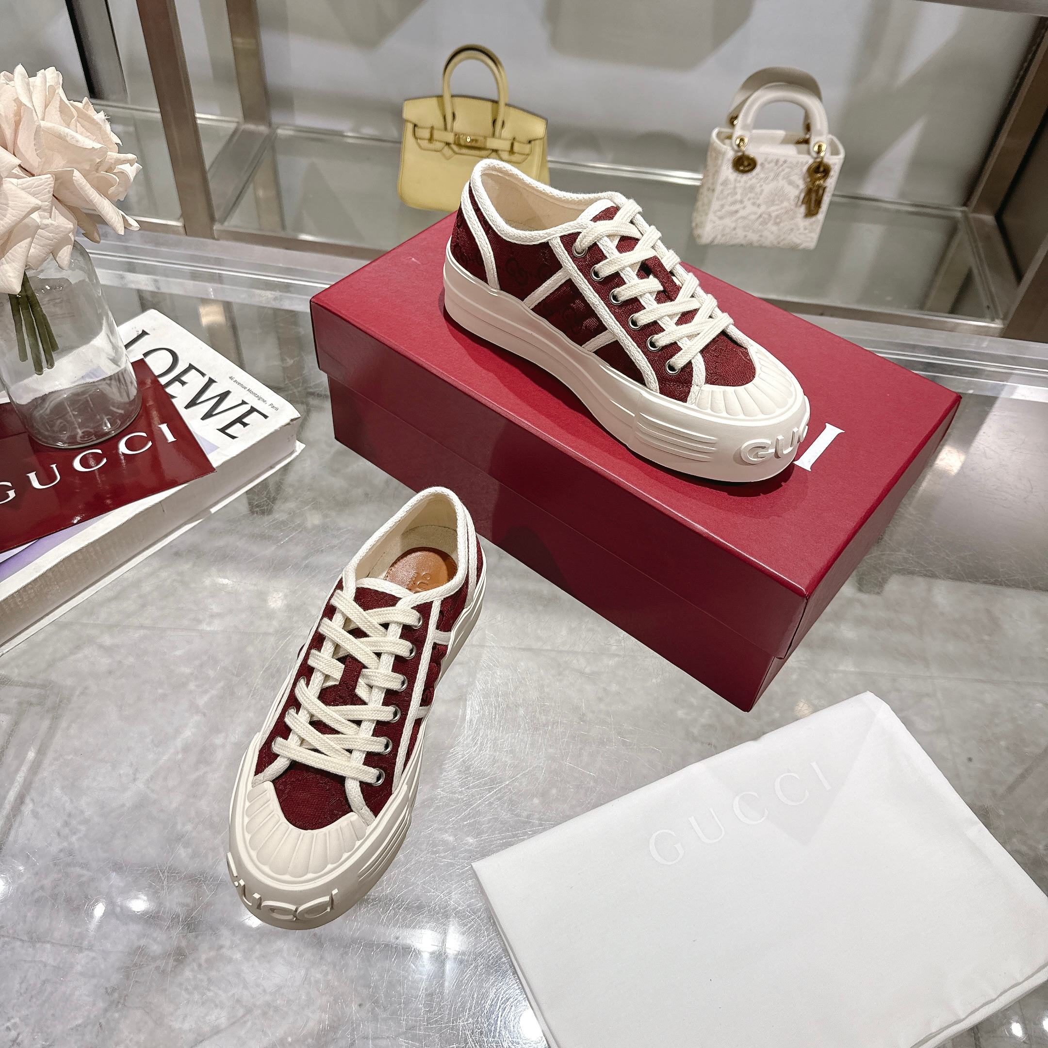 GG Low Sneaker Barn Red Canvas Suede Calfskin