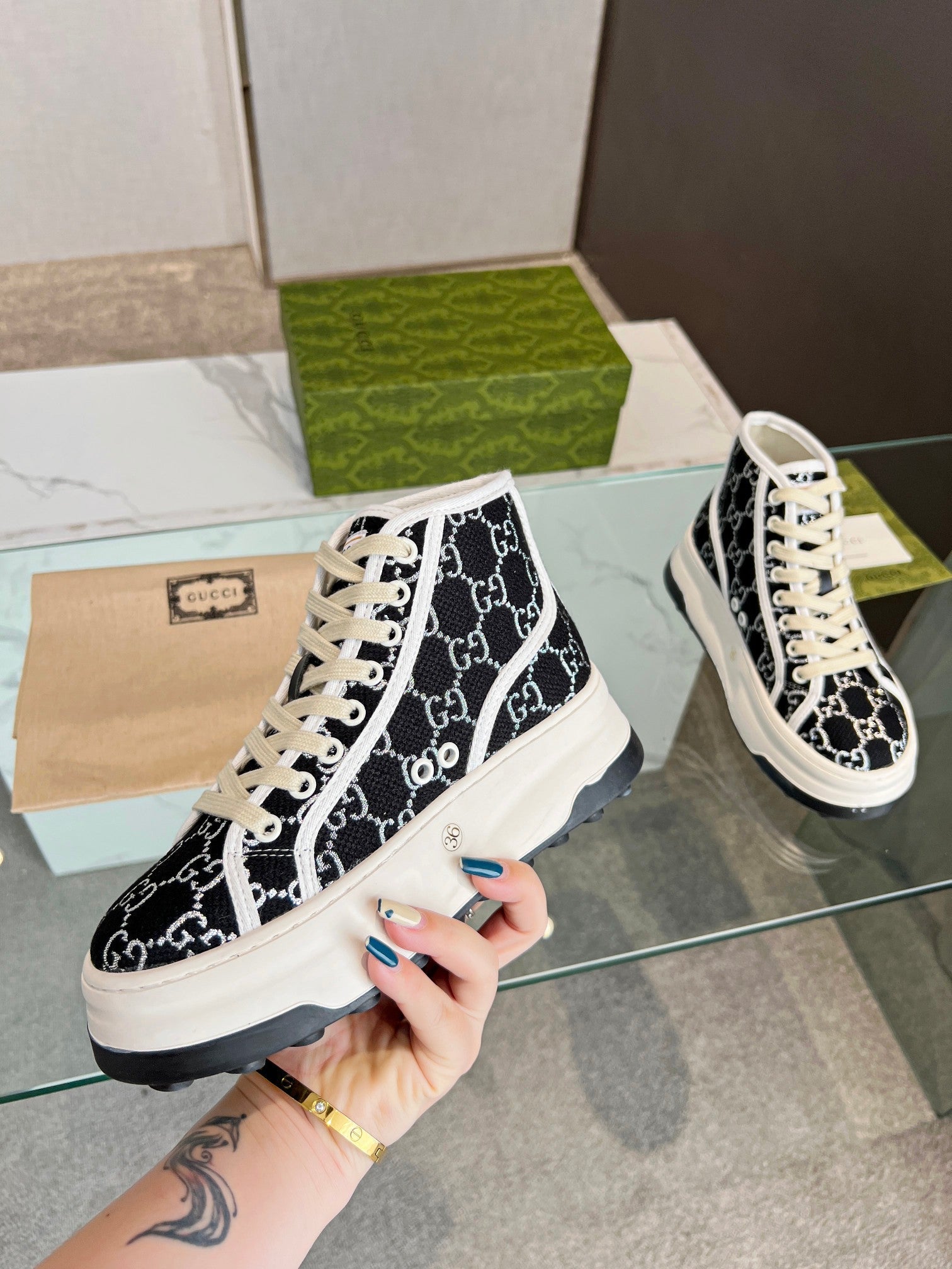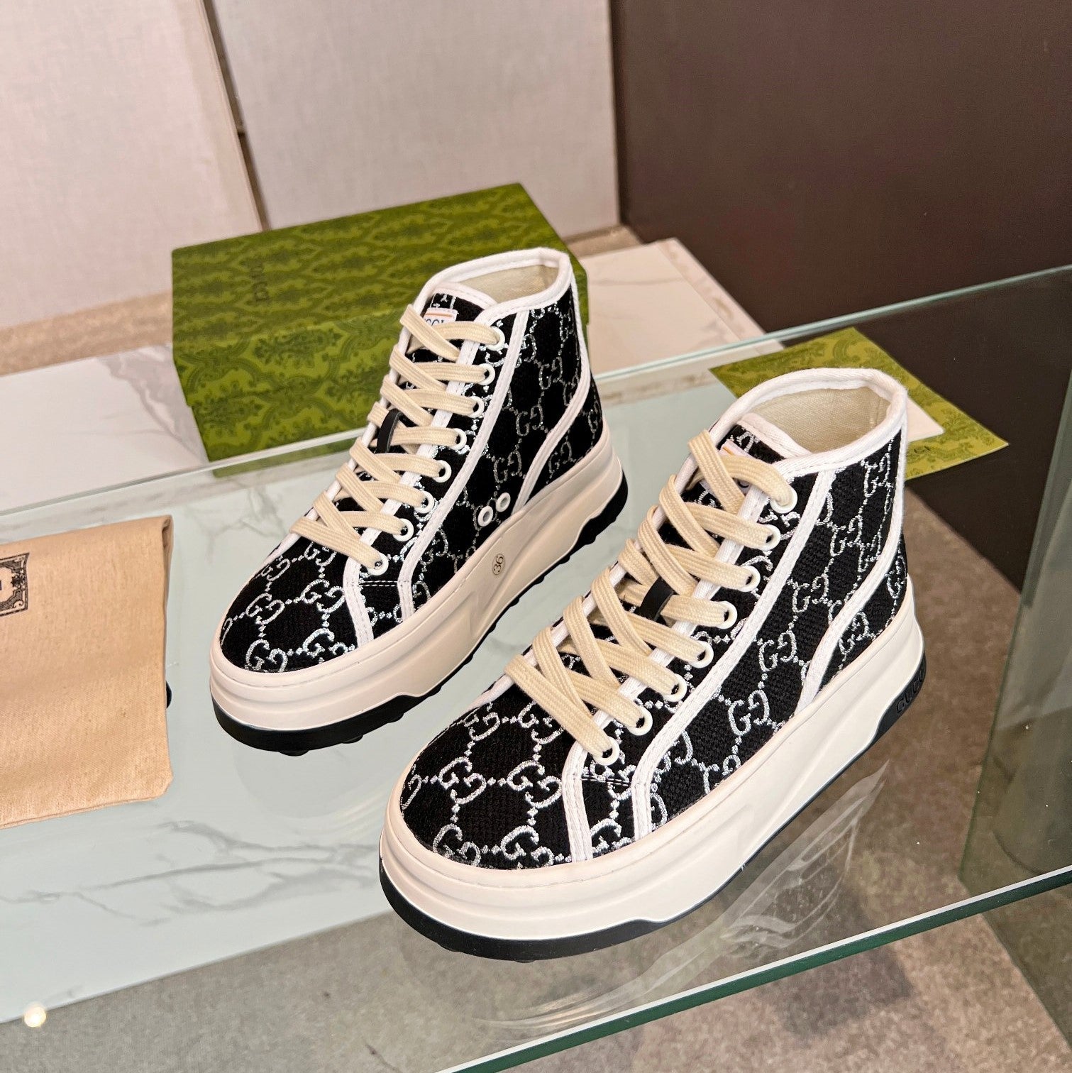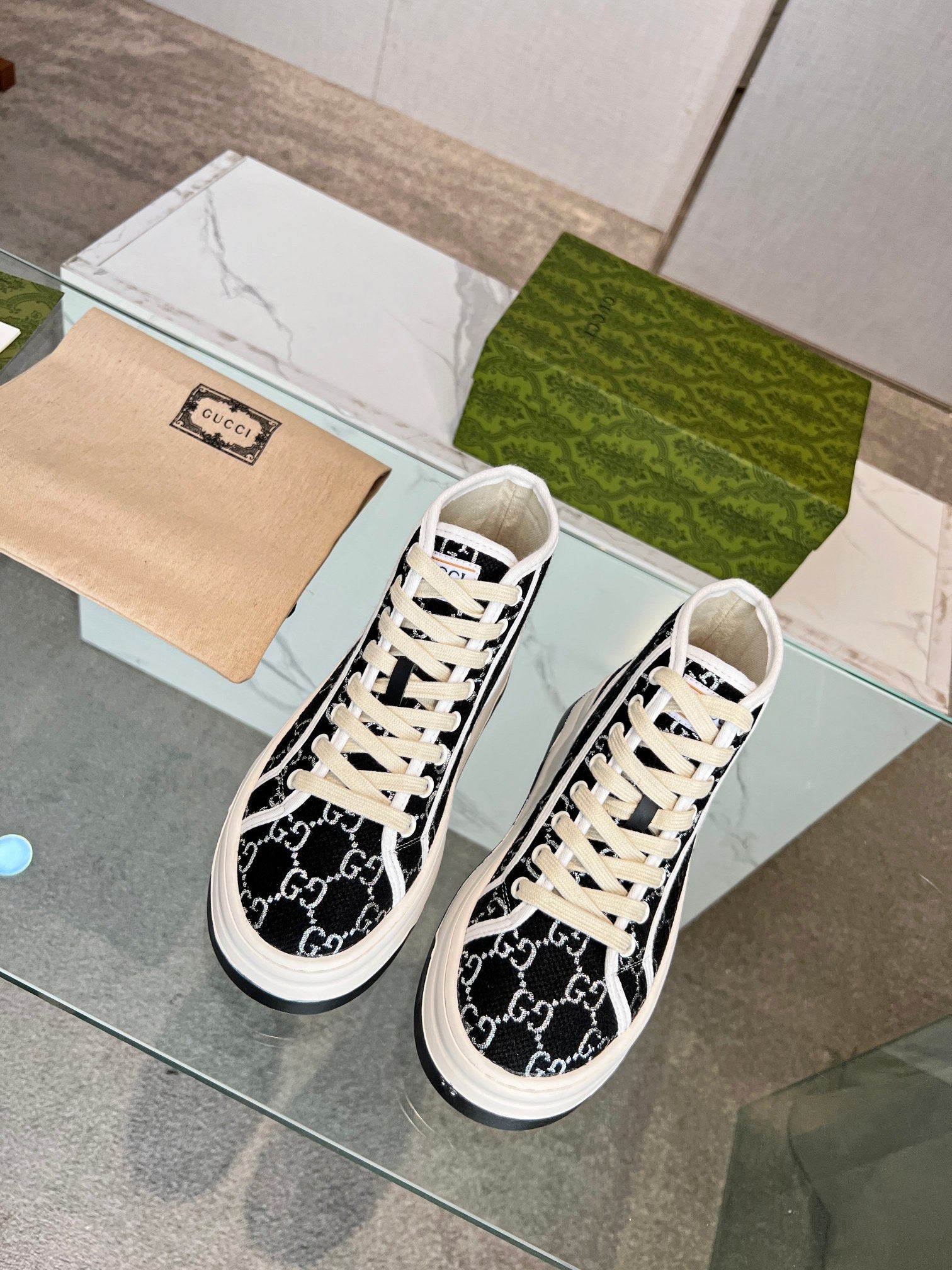 GG High Top Sneakers 50mm Black White Monogram Canvas 457434