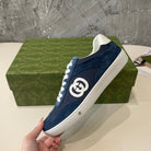 GG Low Sneaker Navy Blue Canvas Suede Calfskin
