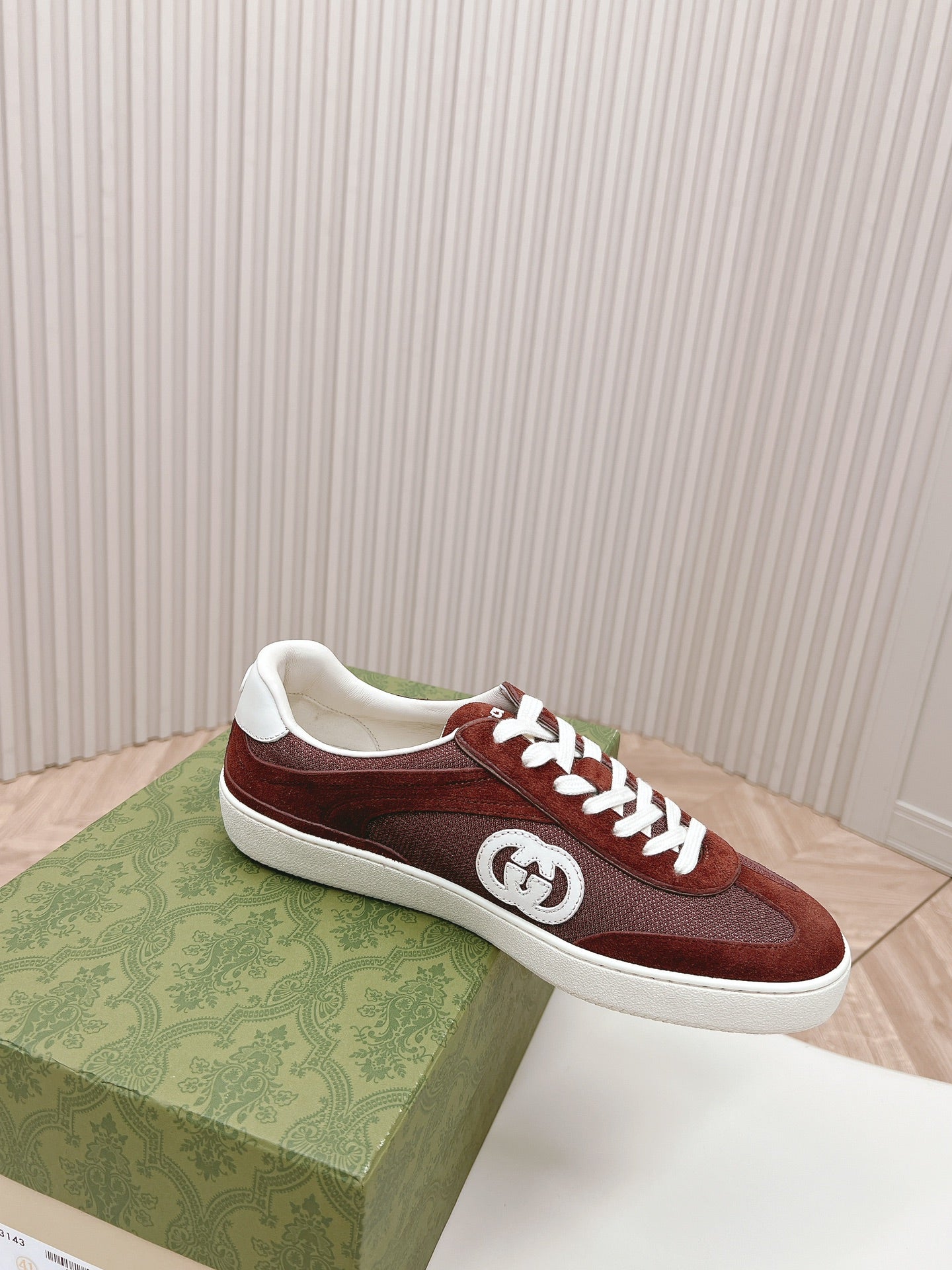 SNEAKER WITH INTERLOCKING G IN GARNET RED SUEDE AND MESH