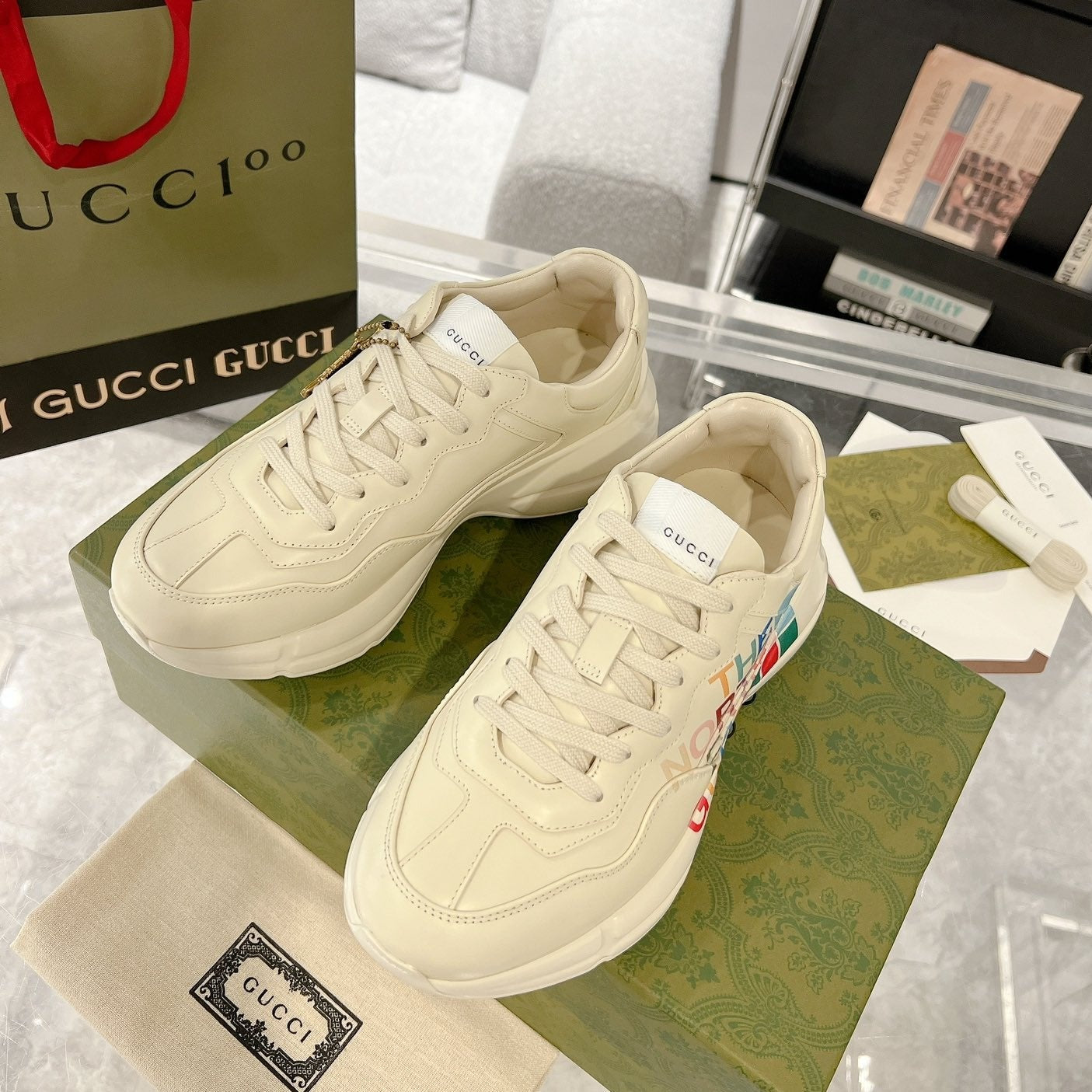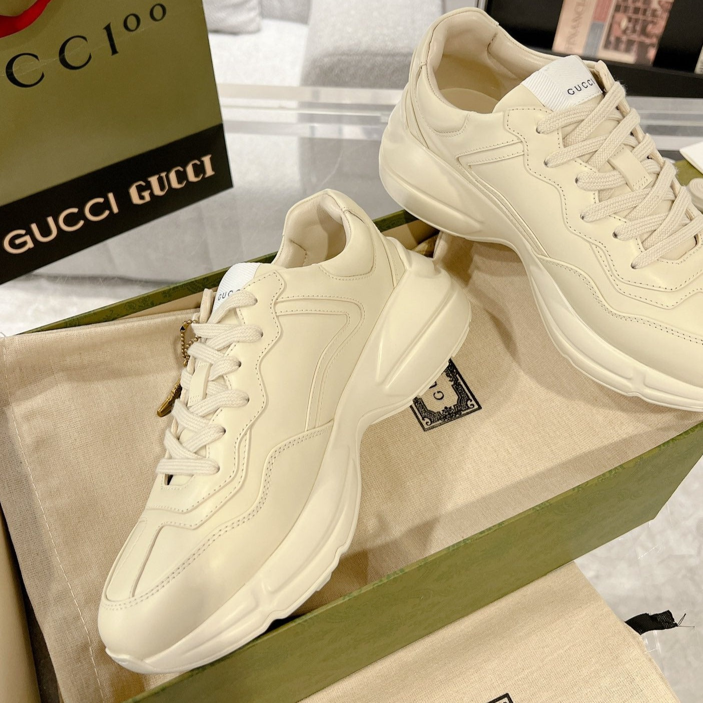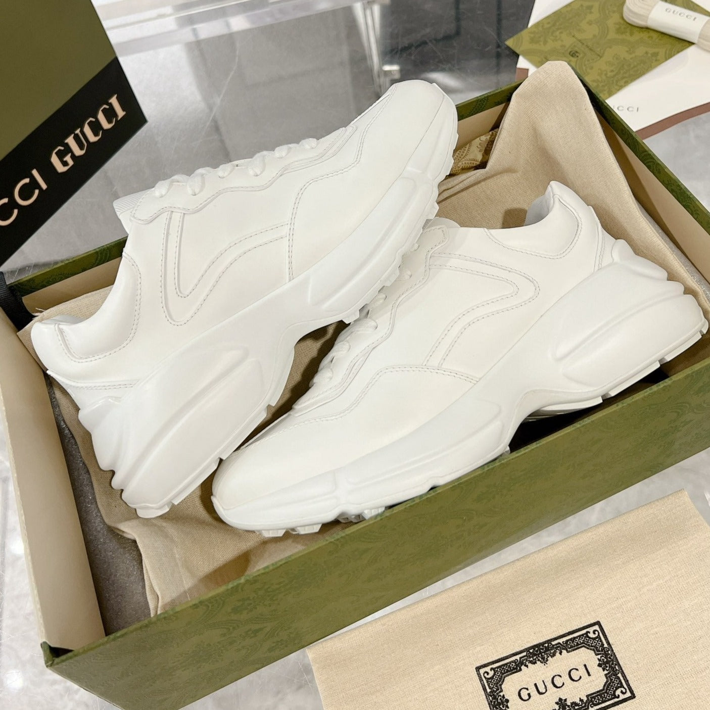 GG Rhyton Trainer Leather White Black