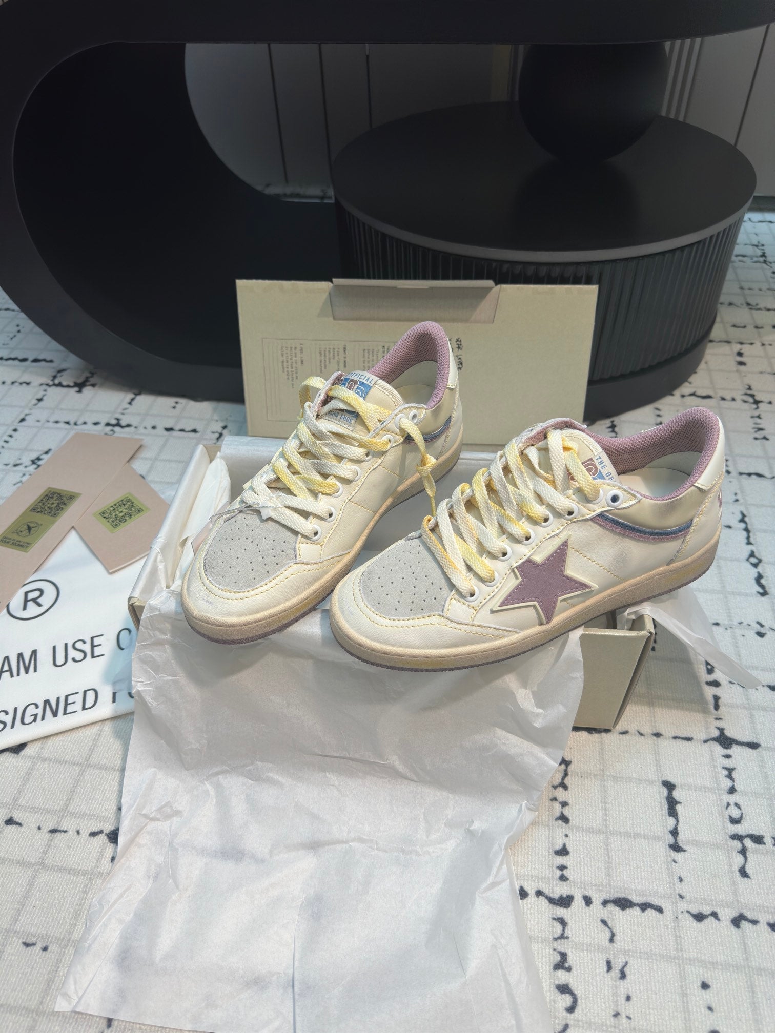 BALL STAR SNEAKERS WHITE CALFSKIN WITH HURRICANE PURPLE STAR