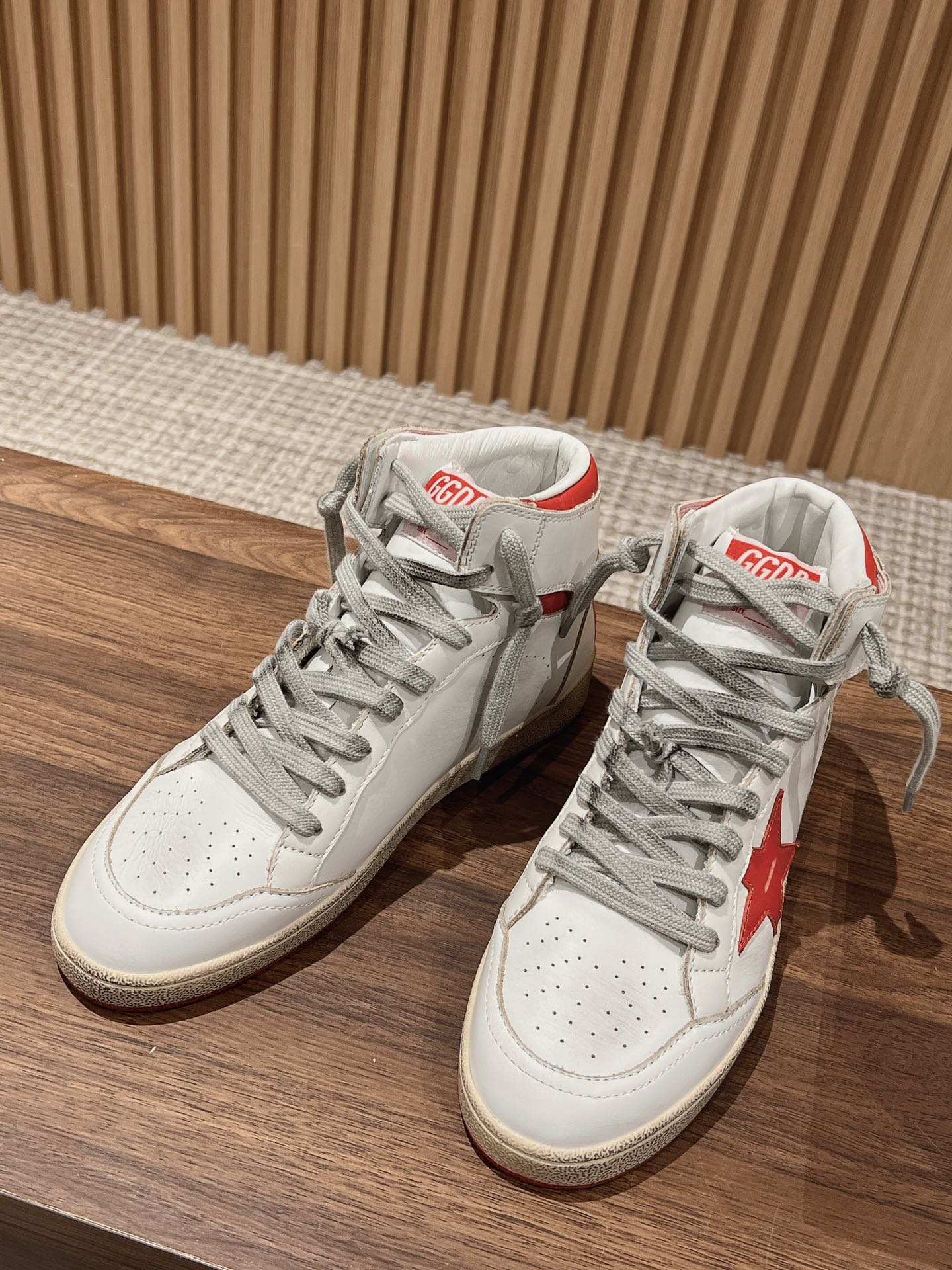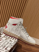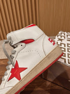 SKY-STAR SNEAKERS IN WHITE NAPPA LAMBSKIN WITH RED STAR AND HEEL TAB