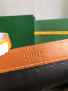 BELLECHASSE BIAUDE PM BAG 36 IN BLACK GOYARDINE CANVAS AND TAN CALFSKIN TRIM