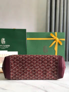 BELLECHASSE BIAUDE PM BAG 36 IN WINE RED GOYARDINE CANVAS AND CALFSKIN TRIM