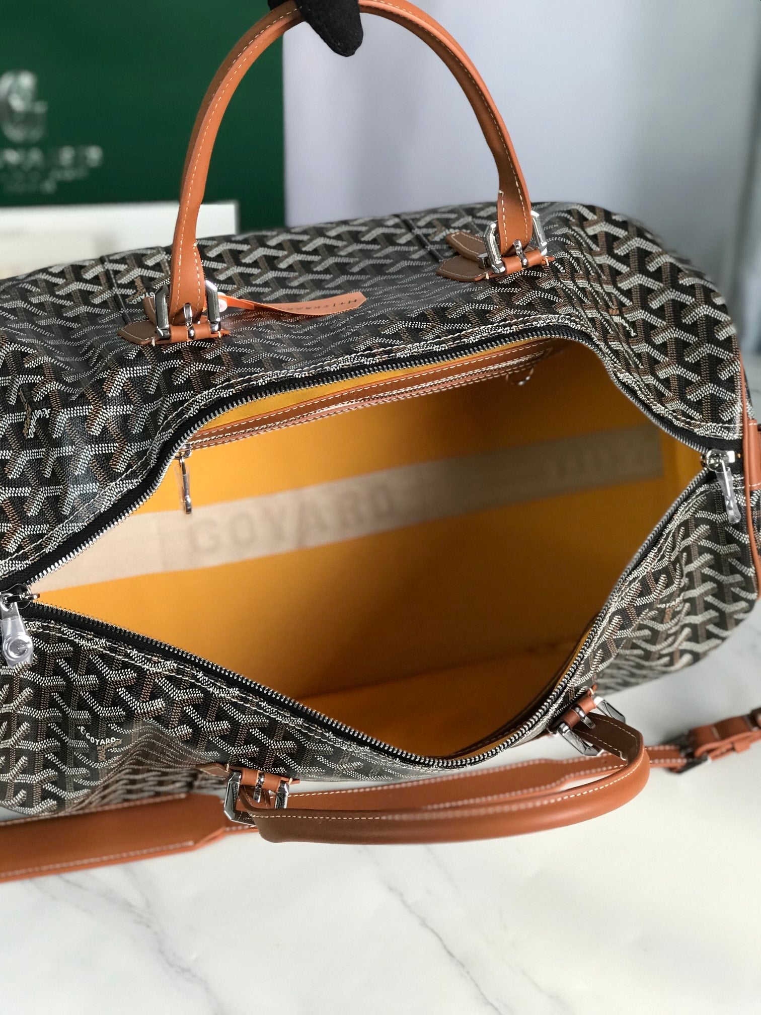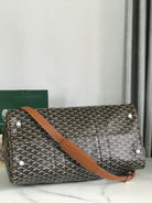 BOSTON 50 BAG IN BLACK GOYARDINE CANVAS AND TAN CALFSKIN TRIM