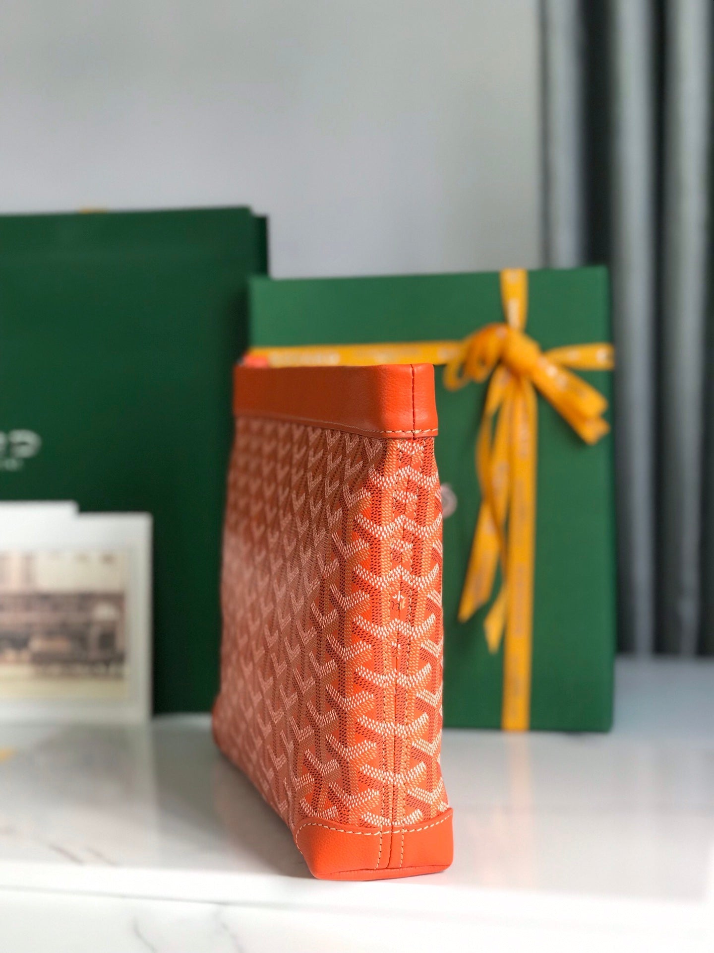 CONTI POUCH 24 IN ORANGE LAMBSKIN AND GOYARDINE CANVAS