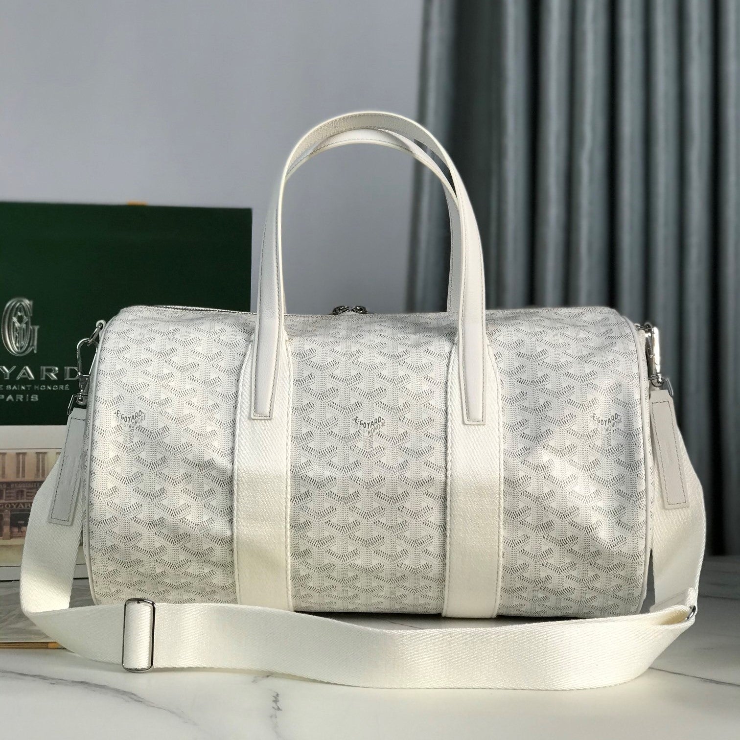 Goyard Barrel 40 Sports Bag White Canvas & Calfskin