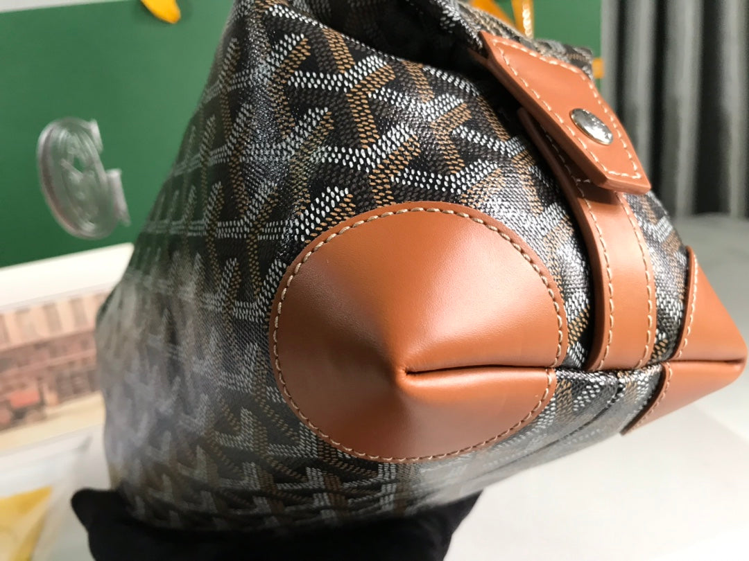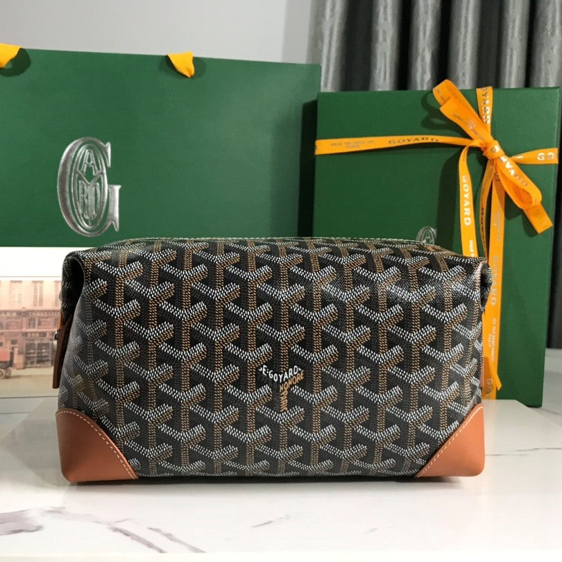 Goyard Bowling 25 Toiletry Bag Black Tan Canvas & Calfskin