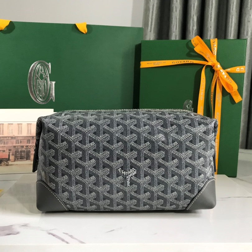Goyard Bowling 25 Toiletry Bag Grey Canvas & Calfskin