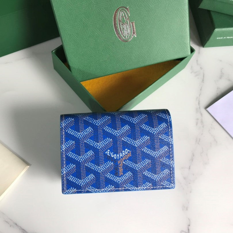 Goyard Malesherbes Card Wallet 10cm Blue Canvas & Calfskin