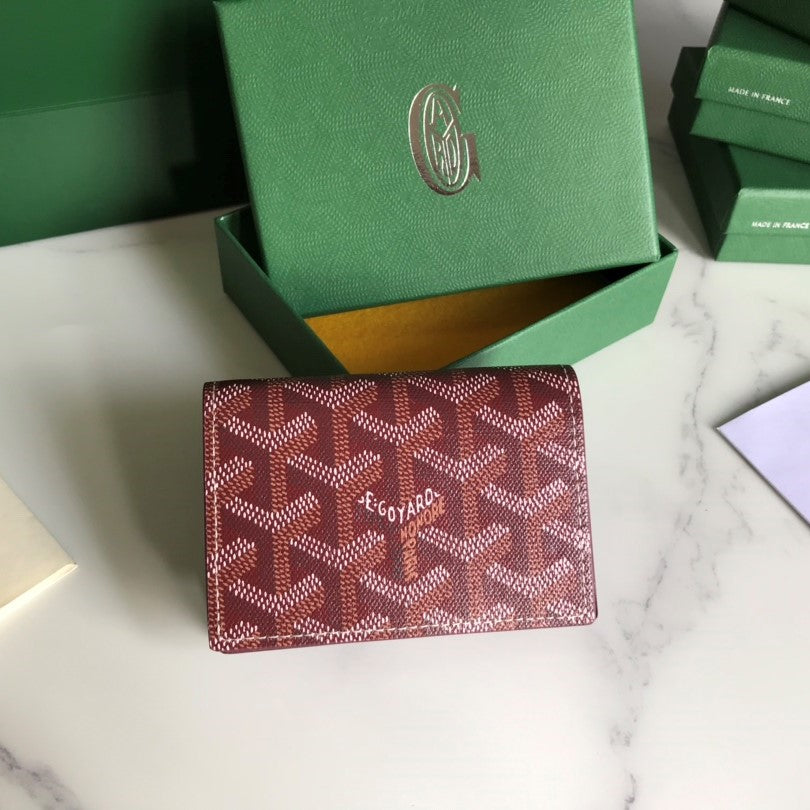 Goyard Malesherbes Card Wallet 10cm Burgundy Canvas & Calfskin