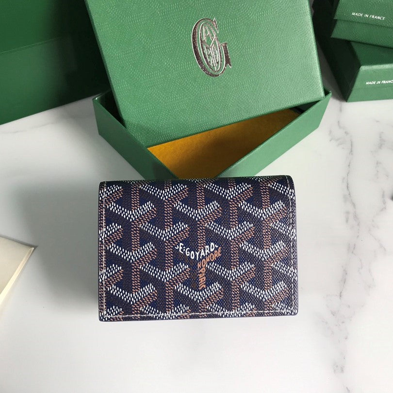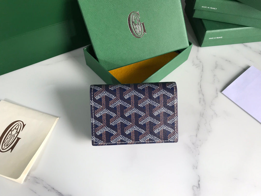 Goyard Malesherbes Card Wallet 10cm Navy Blue Canvas & Calfskin