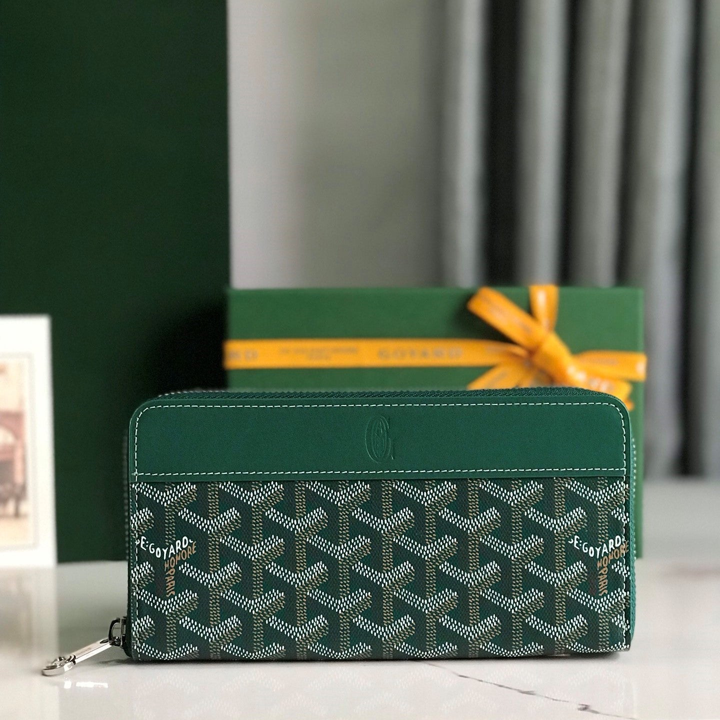 Goyard Matignon GM Wallet 20cm Green Canvas & Calfskin
