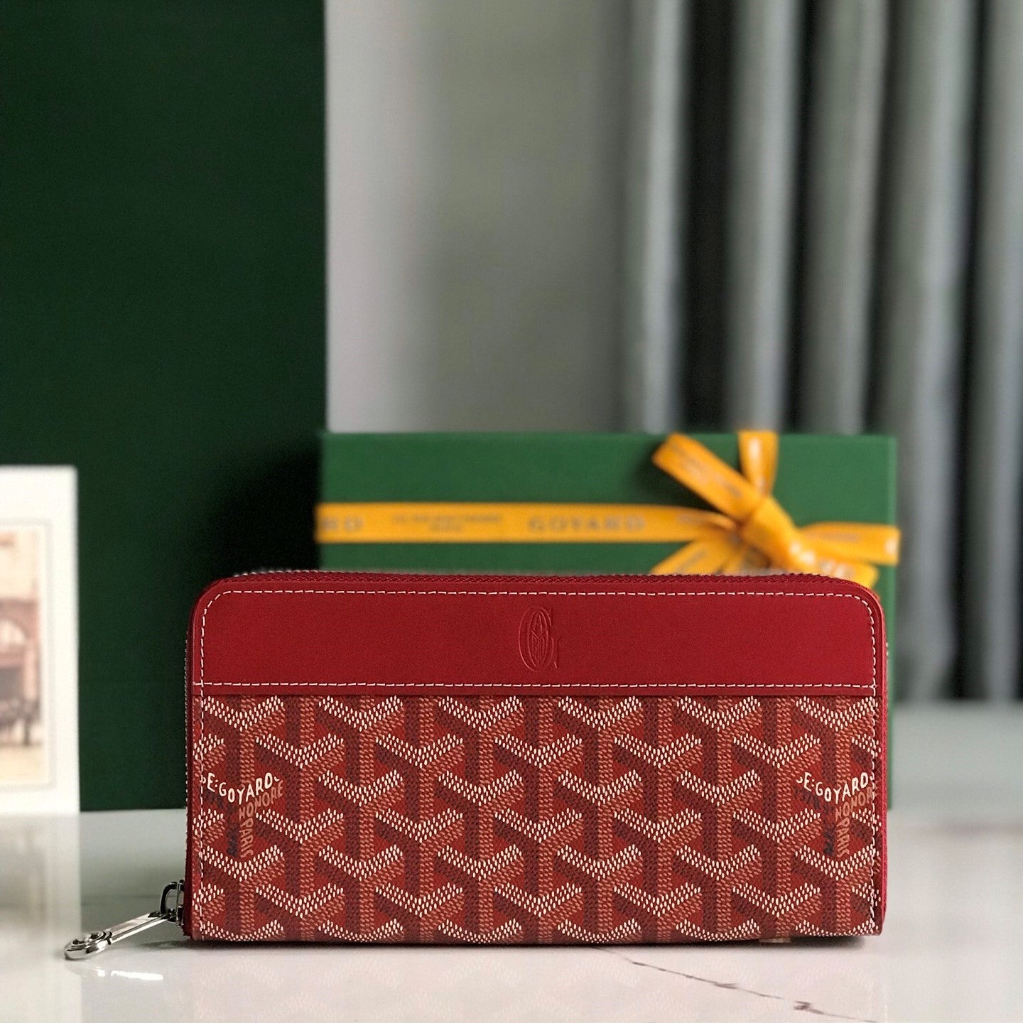 Goyard Matignon GM Wallet 20cm Red Canvas & Calfskin