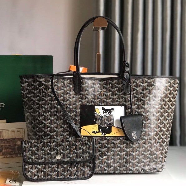 Goyard Hulot Saint Louis PM Bag 34cm Black Canvas & Calfskin