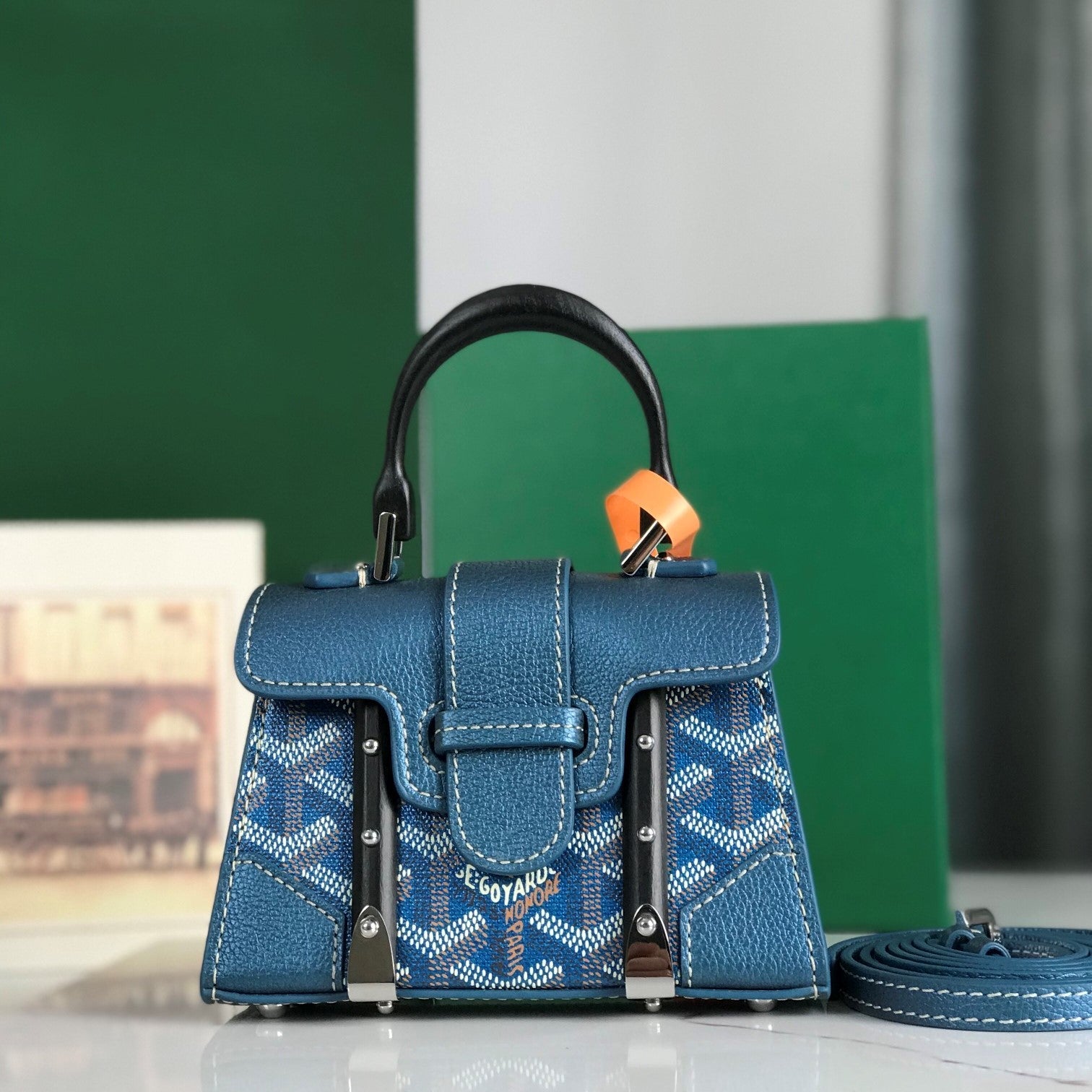 Goyard Saïgon Nano Mini Bag 14.5cm Blue Canvas & Calfskin