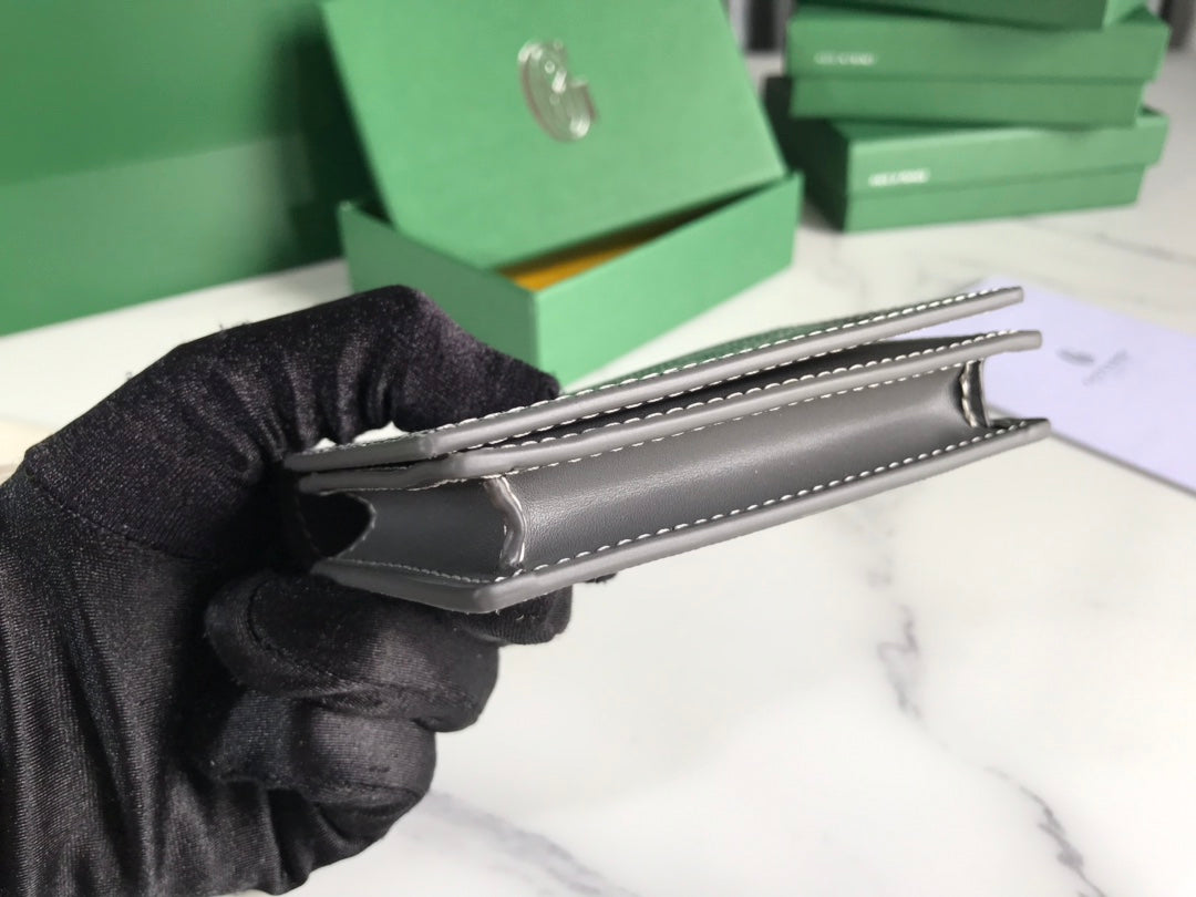 Goyard Malesherbes Card Wallet 10cm Grey Canvas & Calfskin