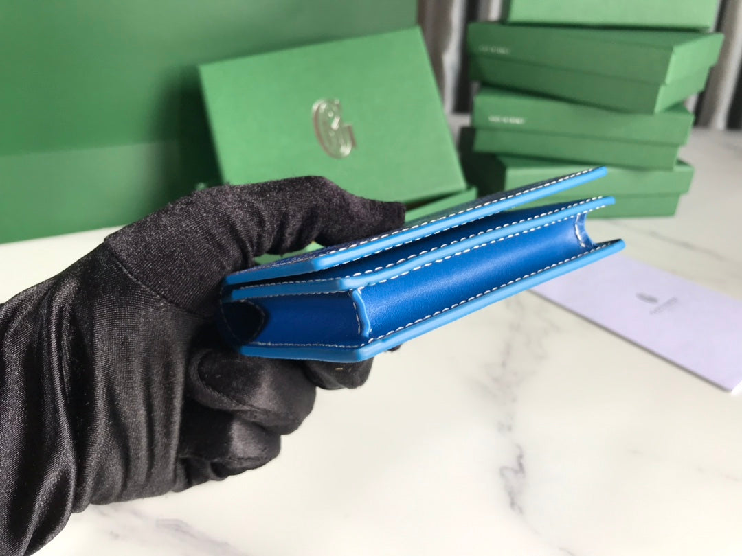Goyard Victoire Wallet 11cm Blue Canvas & Cafskin