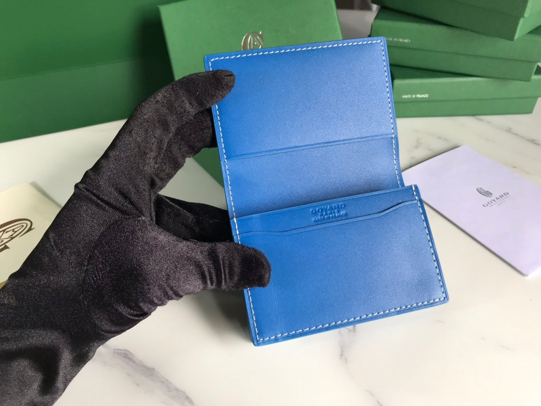 Goyard Malesherbes Card Wallet 10cm Blue Canvas & Calfskin