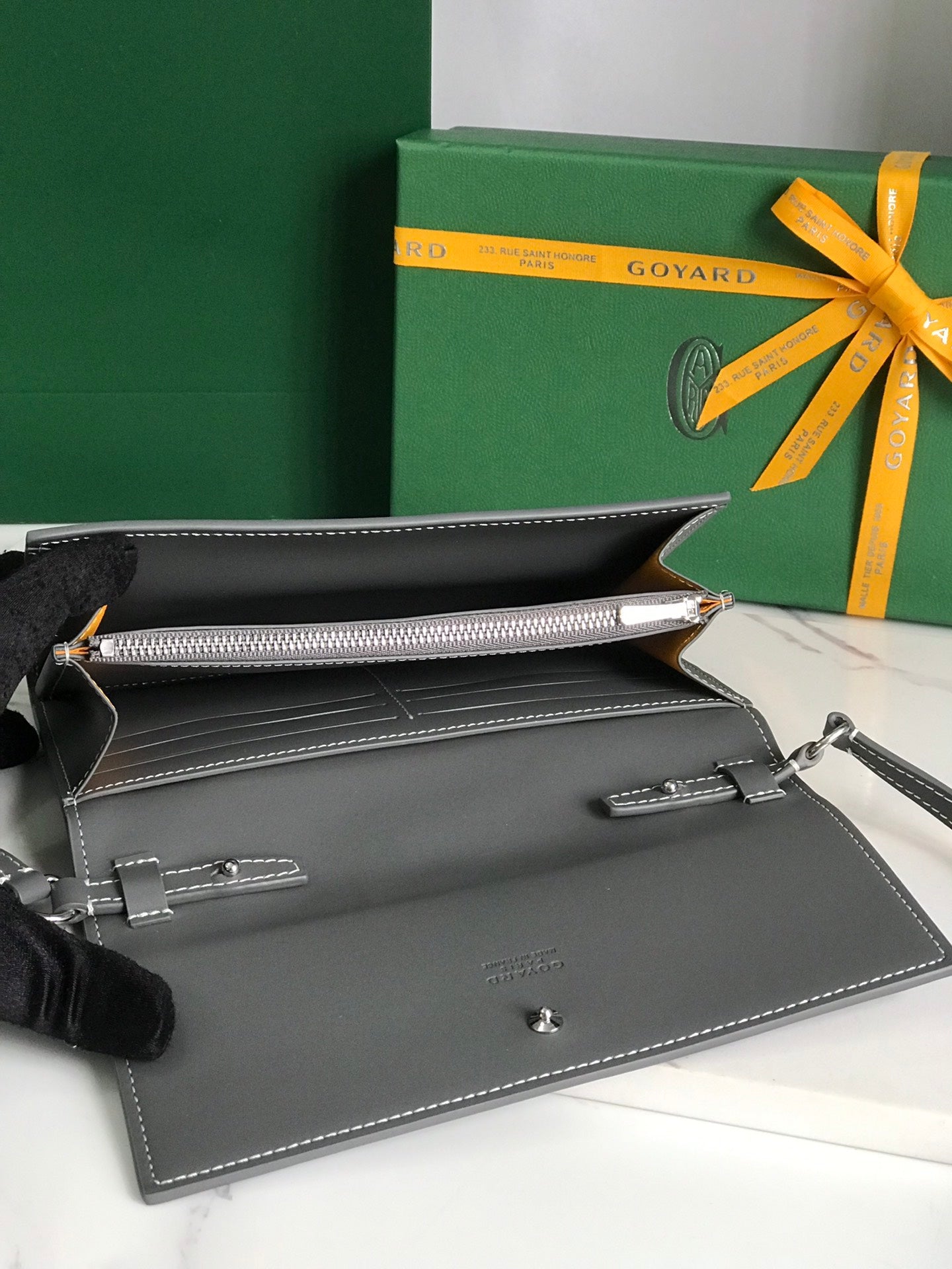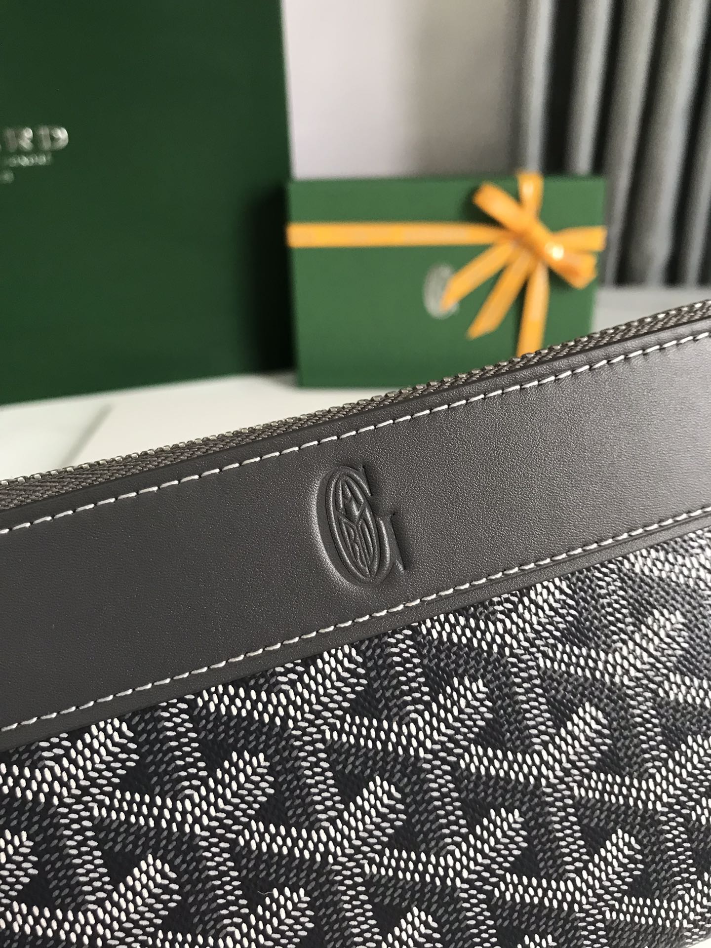 Goyard Matignon GM Wallet 20cm Grey Canvas & Calfskin