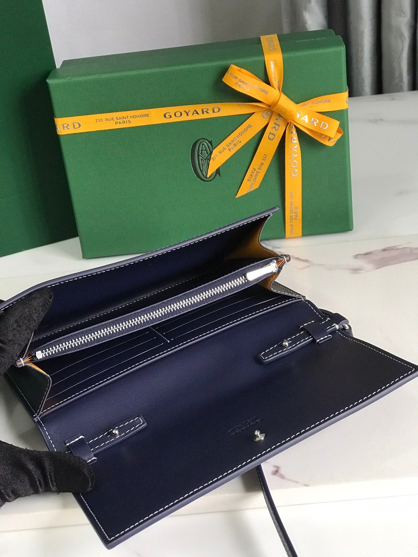 Goyard Matignon GM Wallet 20cm Navy Blue Canvas & Calfskin