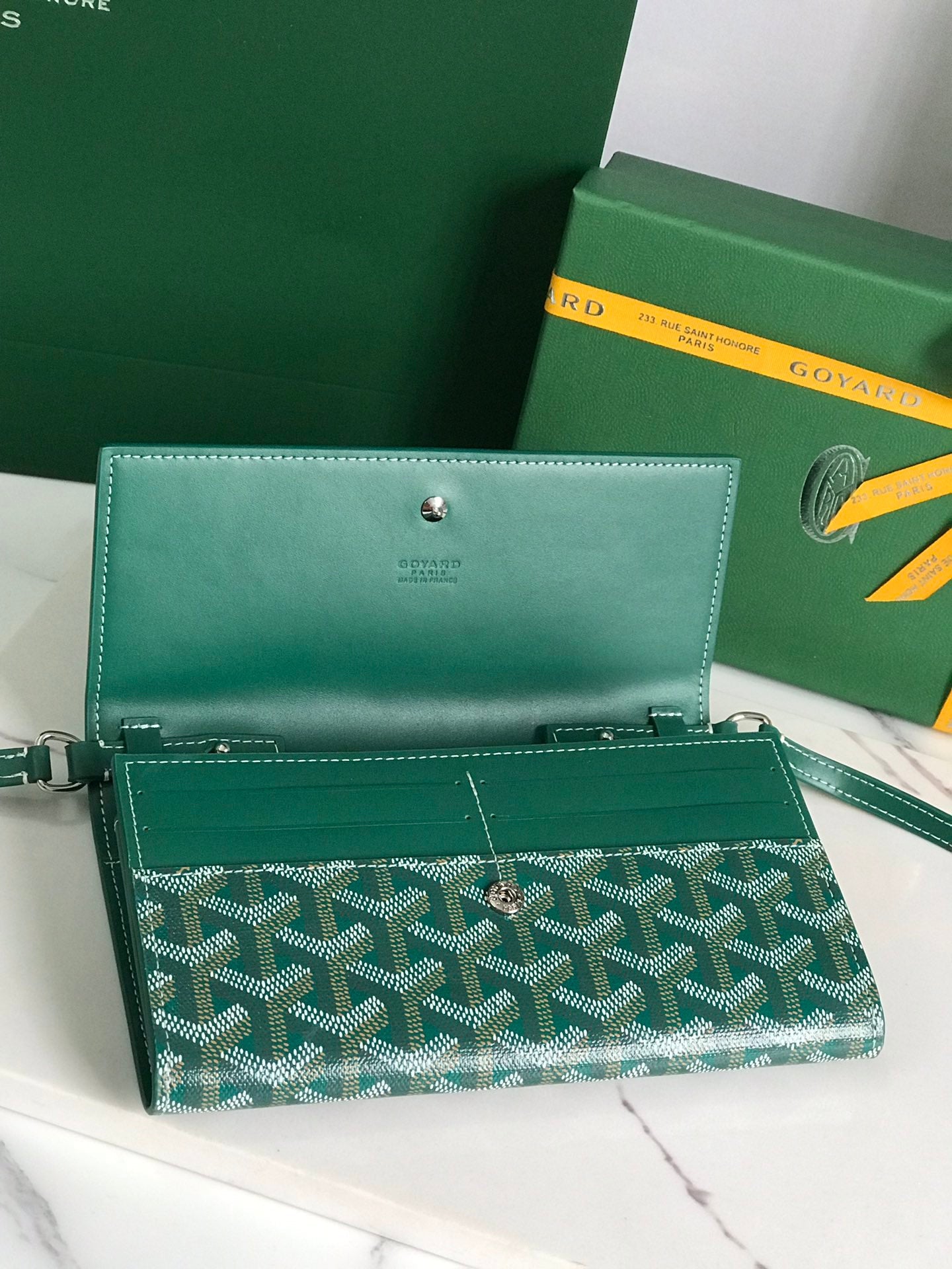 Goyard Matignon GM Wallet 20cm Green Canvas & Calfskin