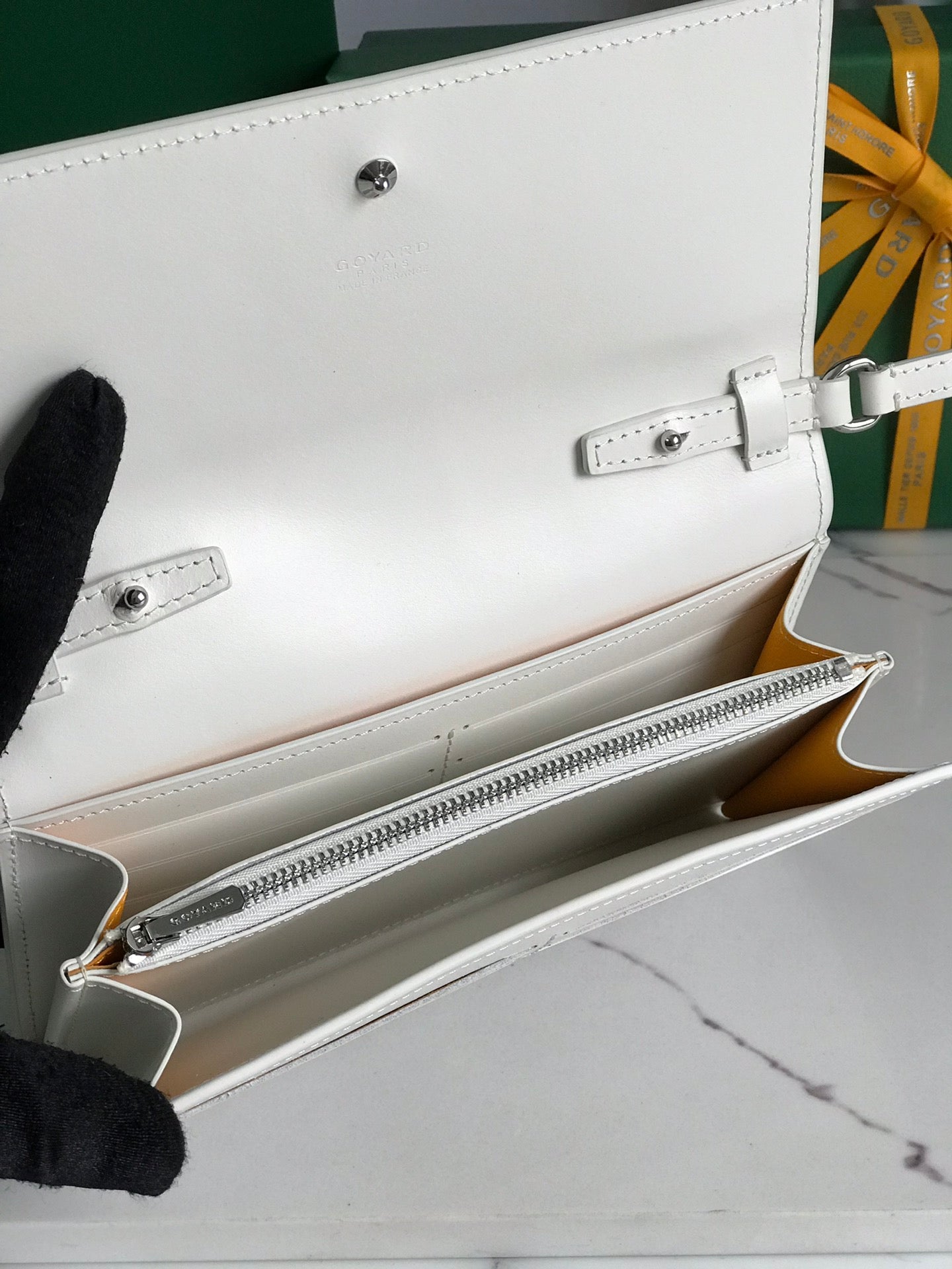 Goyard Matignon GM Wallet 20cm White Canvas & Calfskin