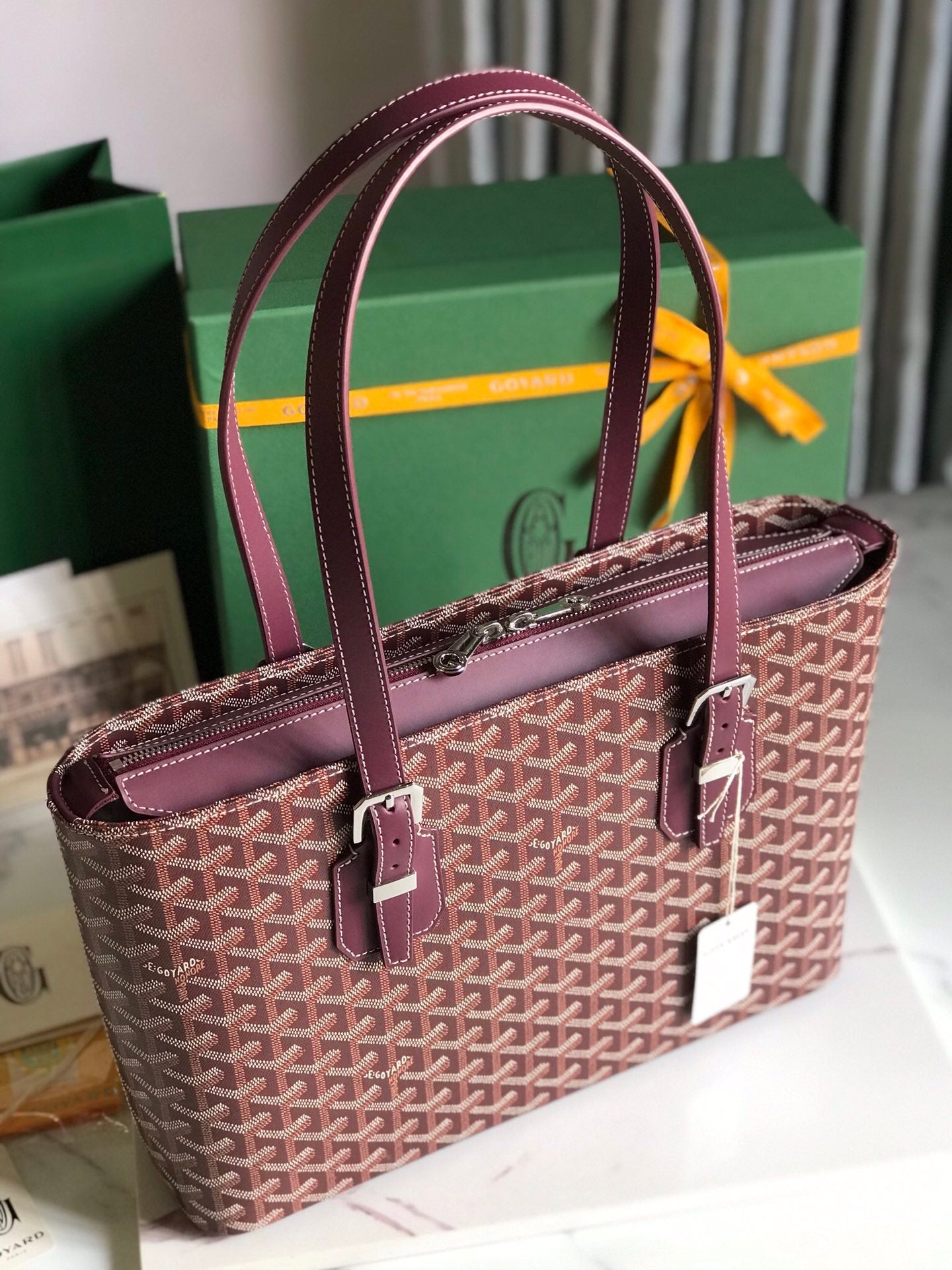 Goyard Okinawa PM Bag 35.5cm Burgundy Canvas&Calfskin