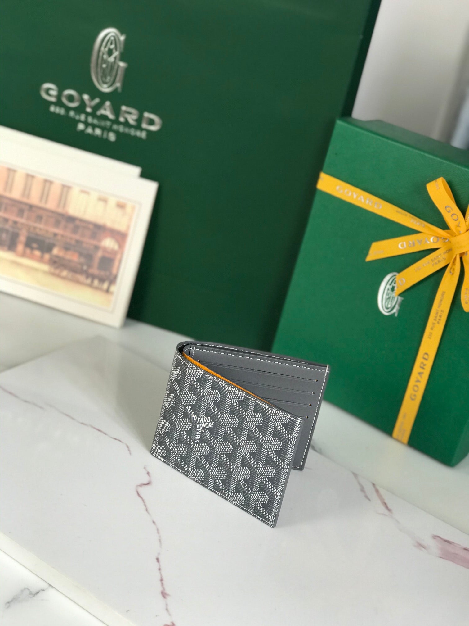 Goyard Malesherbes Card Wallet 10cm Yellow Canvas & Calfskin